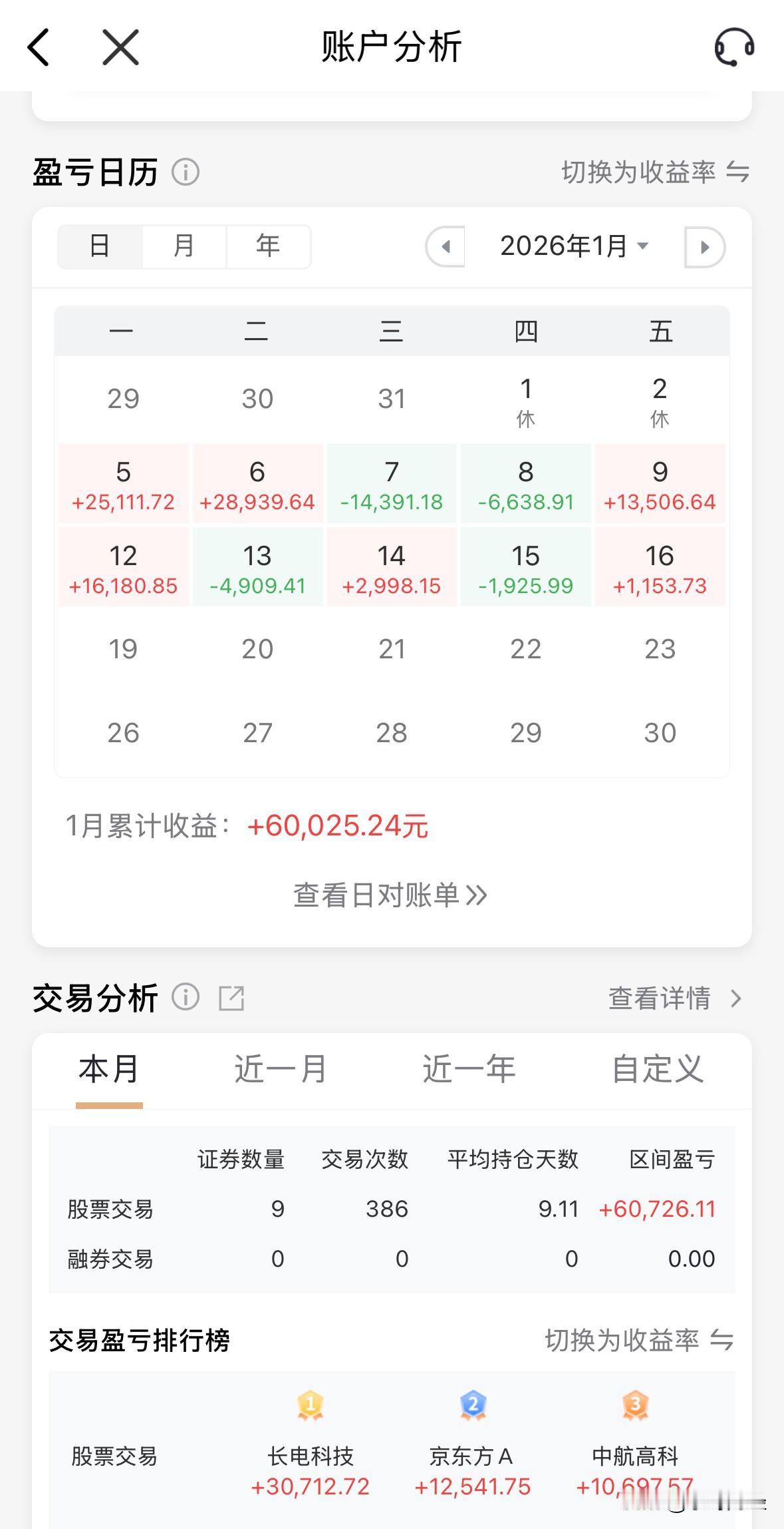 六涨四跌,这便是26年前两周A股十个交易日,乐呀财经个人的战果。 从本周二开始,账户便陷入纠结之中,呈小进小出的格局。 受益于长电科技累计上涨31%的相对强势的表现,收益排名远超其后其他个股。 仓位超1/3券商股,仅小幅盈利。 本周最关键的大事,是盘中出台提高融资担保比例的措施,这也是其后个人账户陷入纠结的主要原因,原本券商股涨势良好的! 4100点上的回调是好事,是必须的敬畏! 乐呀财经