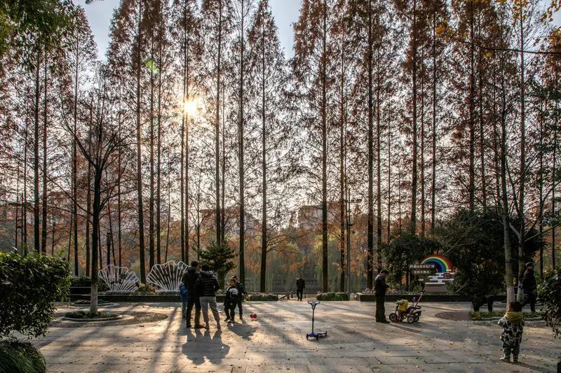 冬日暖阳公园里小孩们在欢乐的玩,大人们聚集在一起谈笑风生。暖阳斜照,银杏叶把地面铺成金色地毯。孩子们追着泡泡机吹出的七彩球,笑声像风铃撞碎在空气里。穿红棉袄的小女孩突然蹲下,把捡到的半片叶子郑重地别在羊角辫上,像给自己加冕的小女王。 长椅那边,老人们的话题从棋局转到孙子的寒假作业。穿军大衣的大爷掏出手机,眯着眼给棋友看刚拍的“九宫格”——原来是他家金毛戴着老花镜的搞怪照。笑声像涟漪荡开,连路过遛狗的年轻人都忍不住回头。