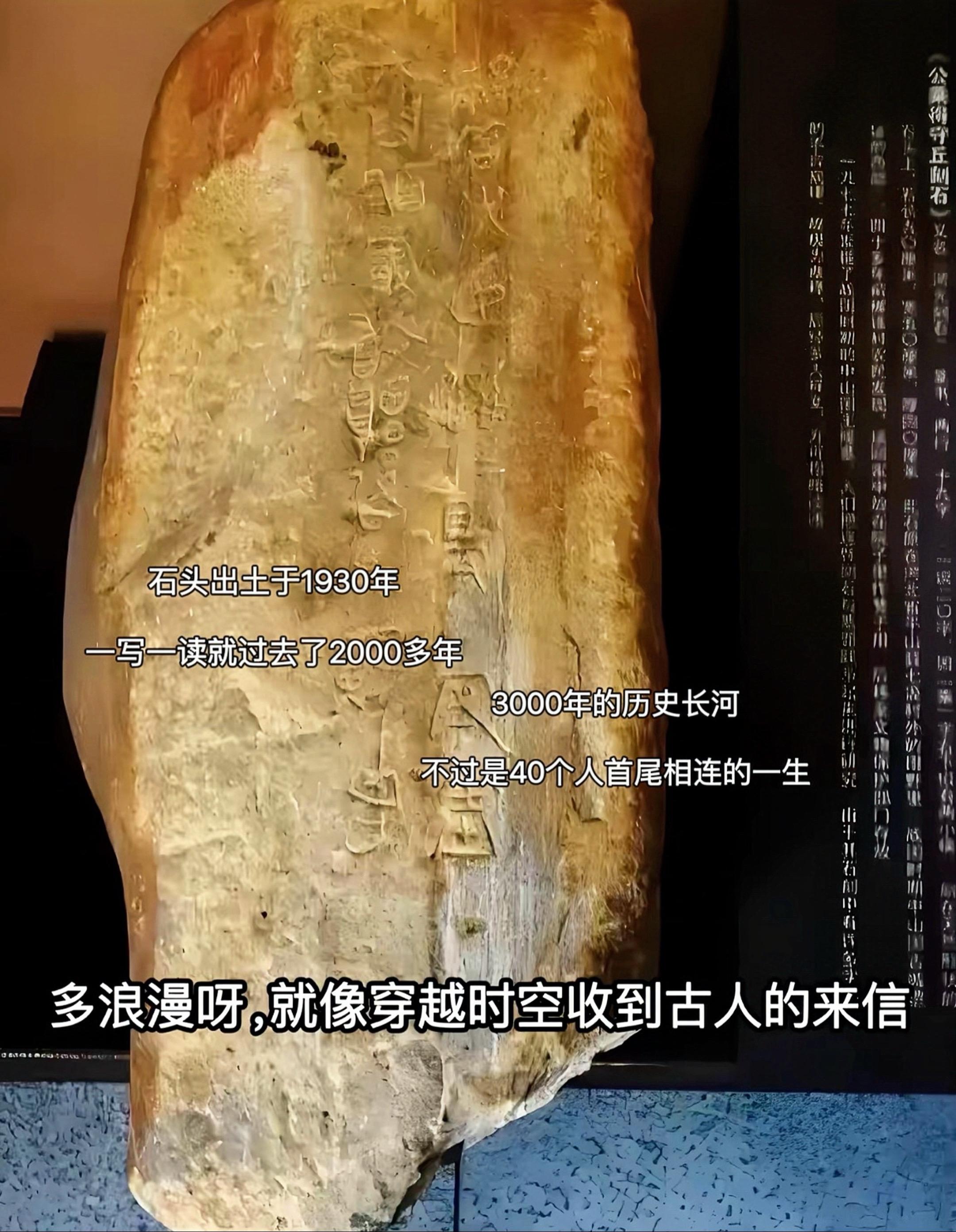 大概在2300年前,有两个人,他们一个叫公乘得,一个叫旧將曼,他们是为大王守墓的人 也许守墓的日子里太无聊了,公乘得就和旧將曼说,我们在大石头上刻字吧 给后世的君子们写一封信 让他们知道在这个地方有两个人为王守墓 于是两个人就在大石头刻字了,大概的意思是: 后世的君子们,你们好呀,我们是为王守墓的公乘得和旧將曼 多浪漫呀,就像穿越时空般收到古人的来信 3000年的历史长河,不过是40个人首尾相连的一生