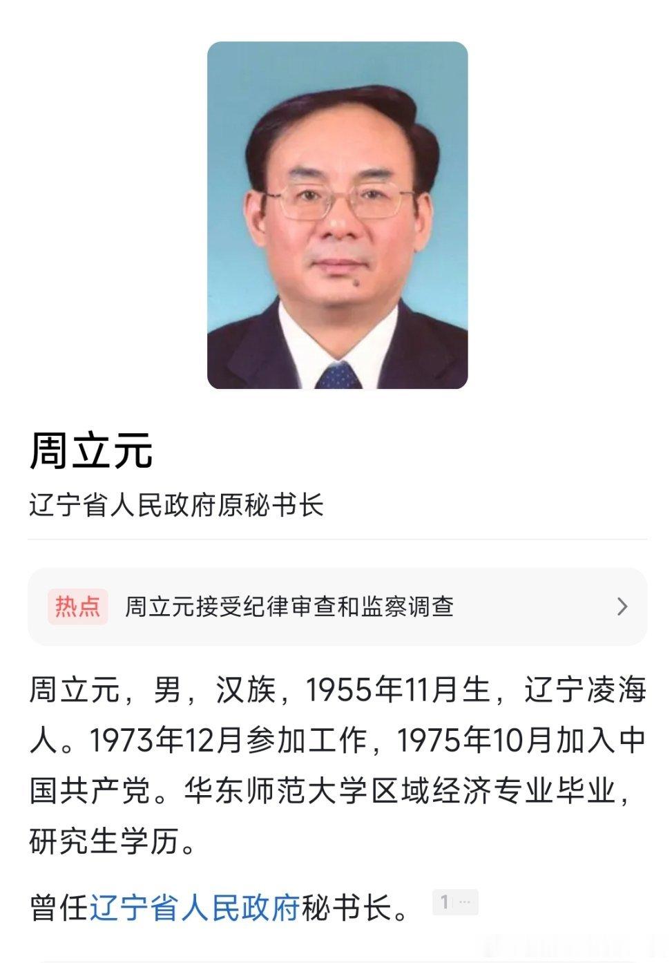 辽宁省人大法制委员会原主任委员周立元接受审查调查。