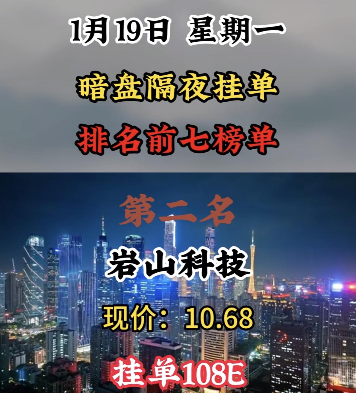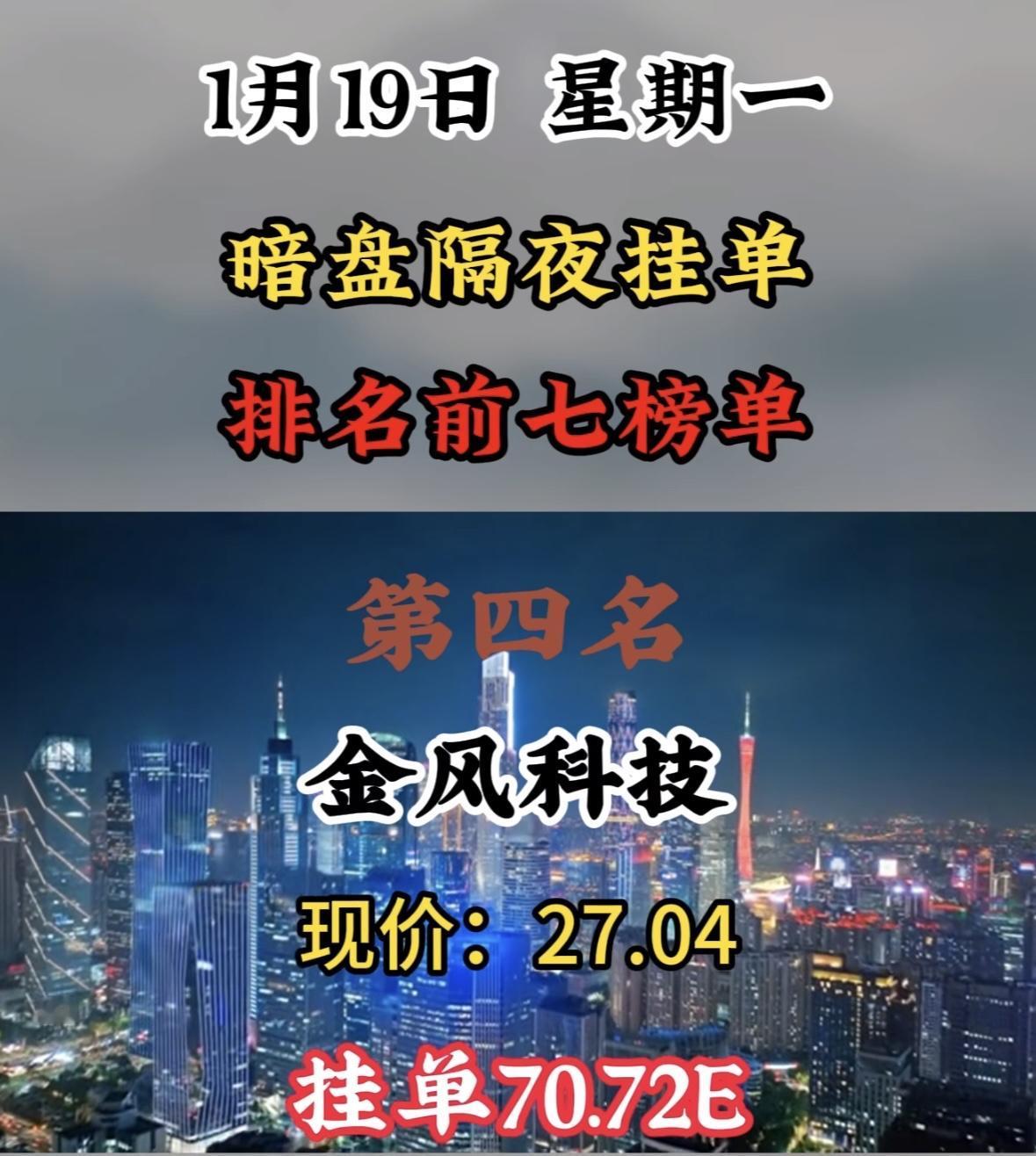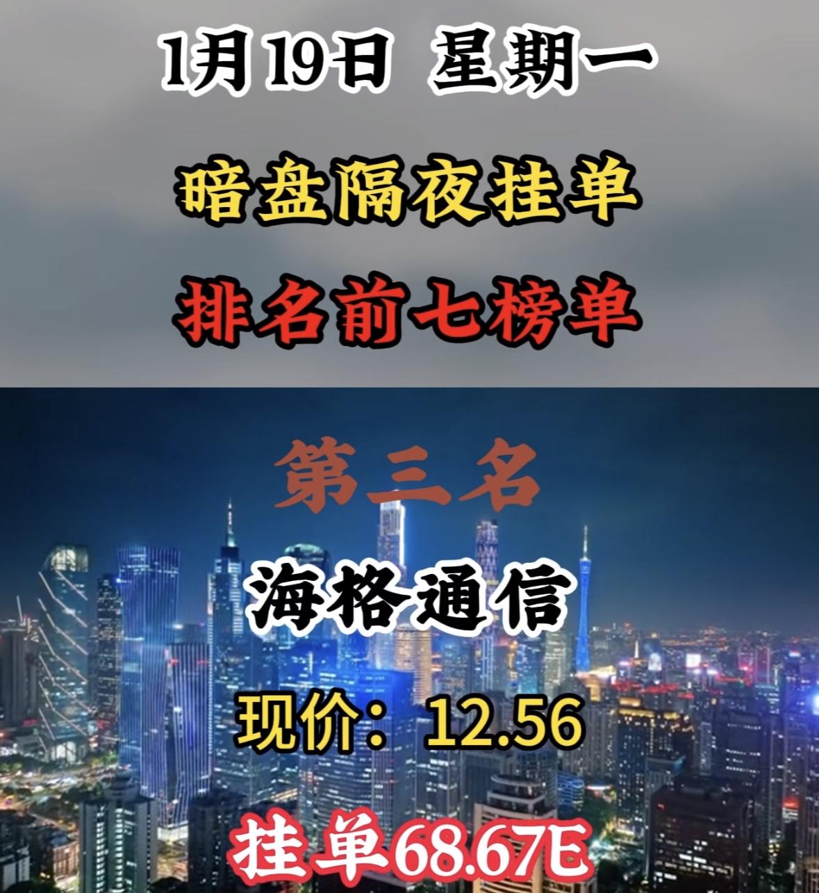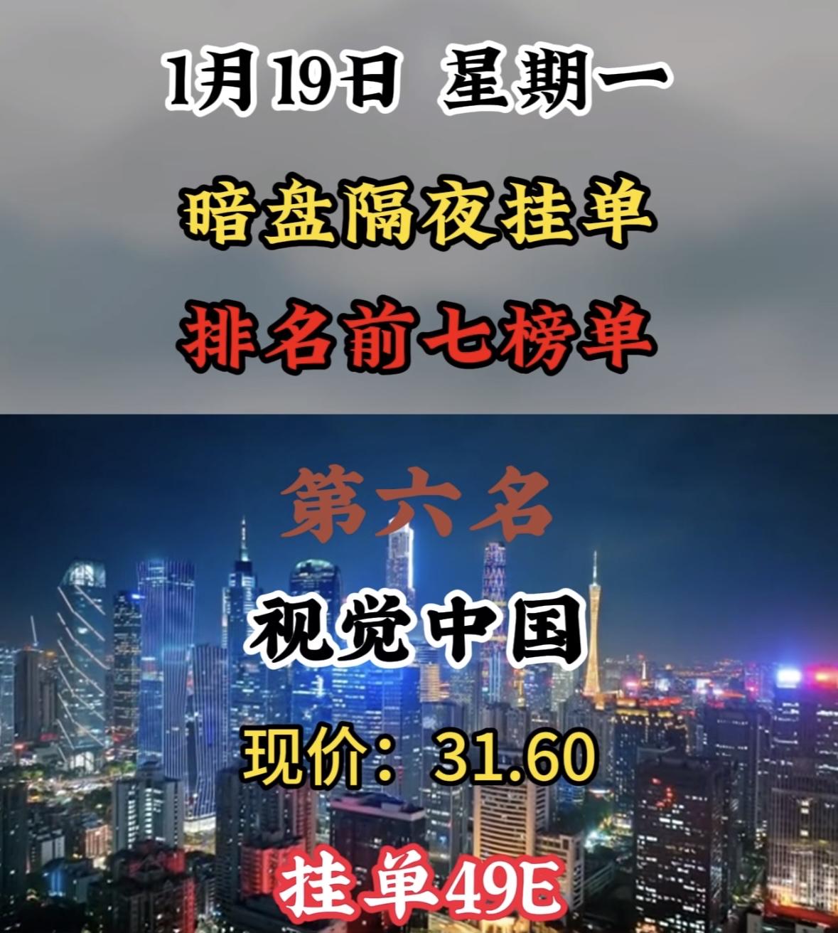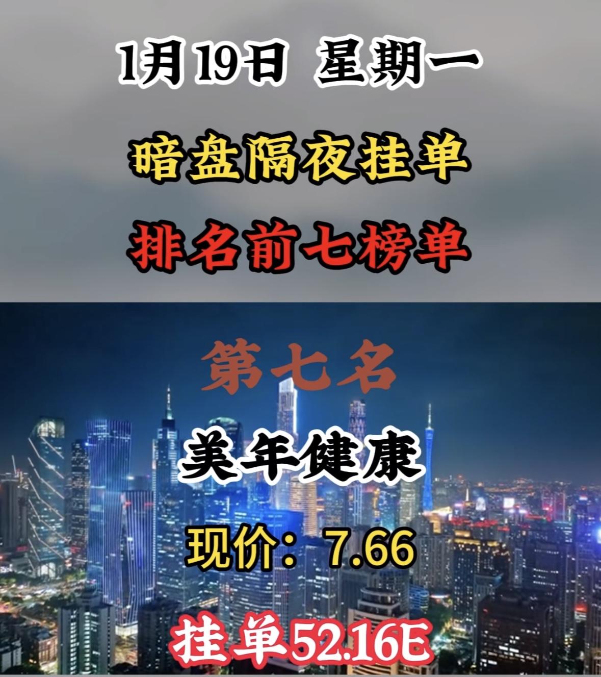 1月19日暗盘隔夜挂单,美年健康现价7.66,挂单52.16E "华胜天成登顶暗盘榜首,挂单活跃显市场,周一行情不容乐观。” 暗盘华胜天成领跑,挂单量惊人。