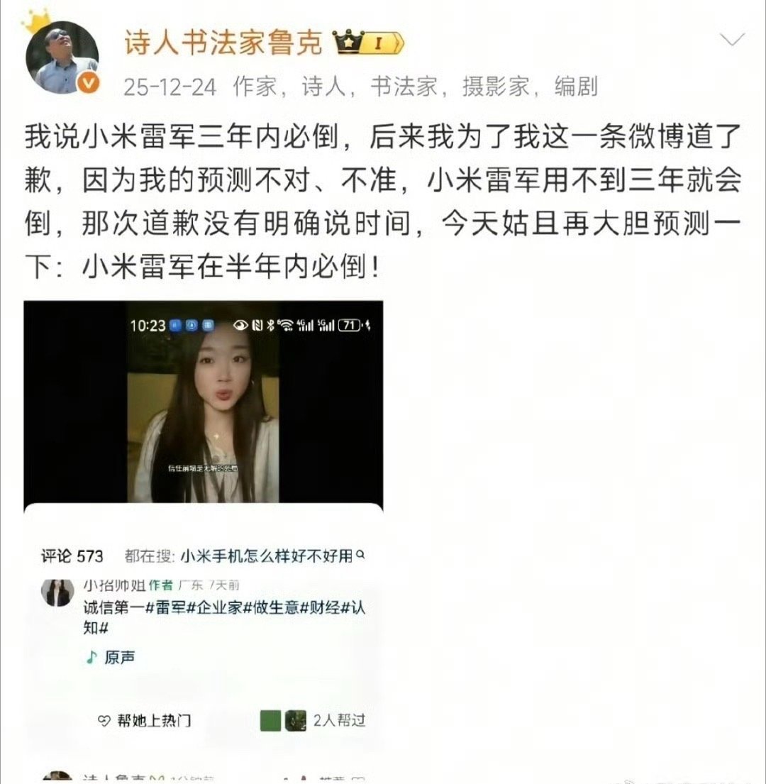 这种人能火说明了一个事情很多小米黑子只需要情绪价值,而不需要事实基础。像这种纯纯情绪输出,没有任何事实依据的都能当大V,纯纯宣传负能量。封的好!