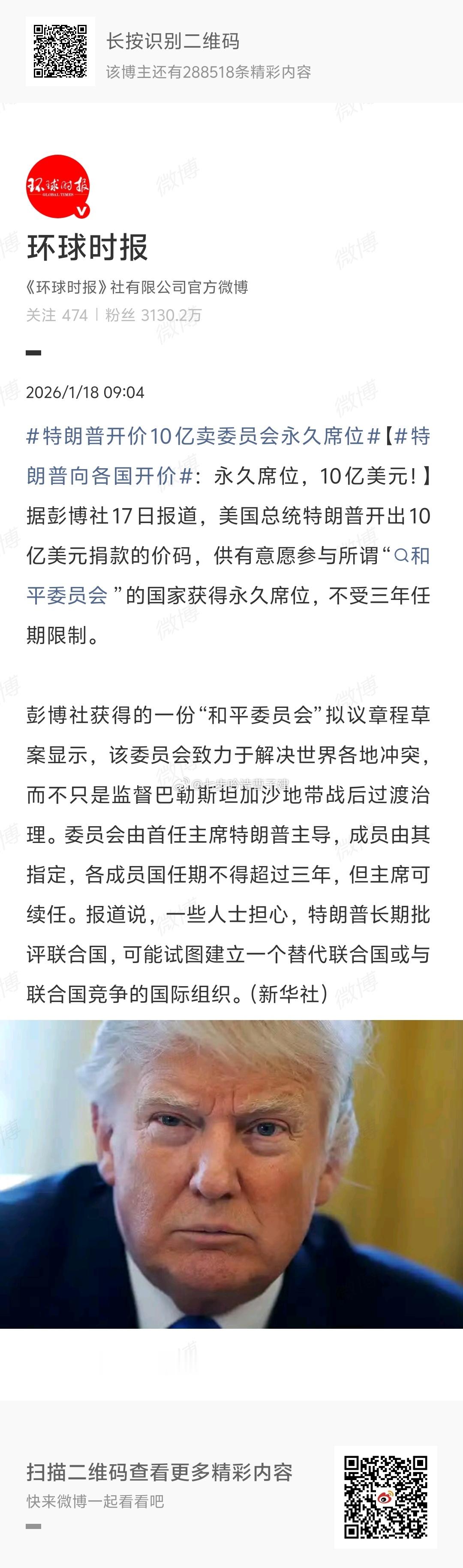 特朗普开价10亿卖委员会永久席位高额赎金还是保护费