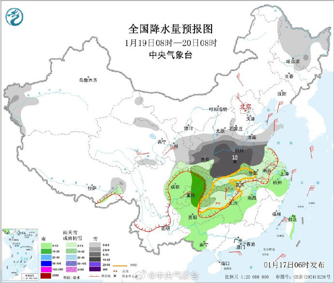 雨(雪)天气将出现在19日-21日前期,山区19日后半夜起转雨夹雪或雪,高山区局部中到大雪,平原地区20日有雨夹雪,21日早晨起雨雪过程结束。