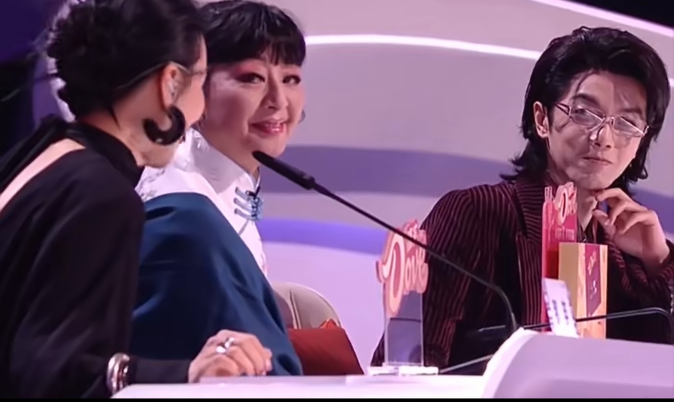 华晨宇就这样看那英热闹那英在两位选手之间犯了难,摆出为难纠结的表情,而华晨宇在旁边就这样吃瓜的看着那姐。声鸣远扬