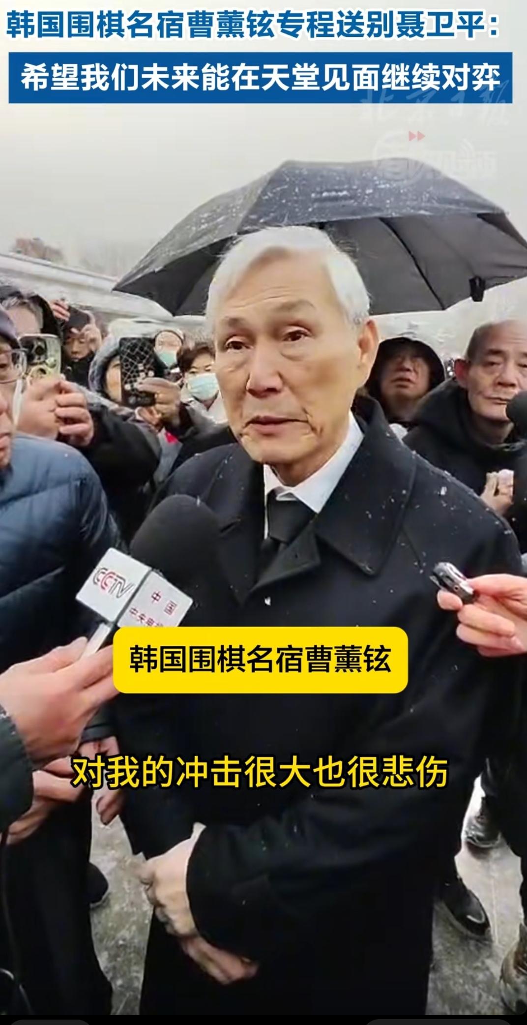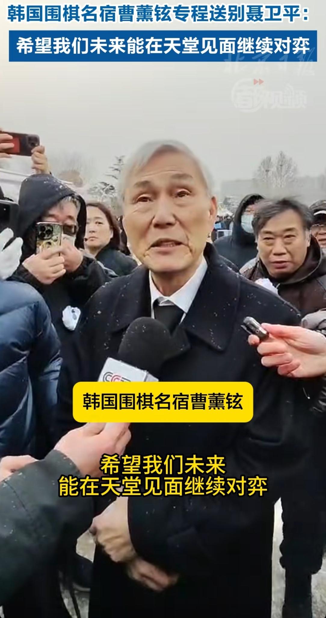 韩国围棋名宿曹薰炫专程从韩国赶来参加聂卫平葬礼,送老友最后一程。他面对记者的镜头难掩悲伤,“认识四五十年的老朋友突然去世对我的冲击很大也很悲伤,希望我们将来能在天堂见面继续对弈”。寥寥数语,令人唏嘘。 场上是对手,场外是朋友,棋艺在对战中增进,友情在时光里沉淀。真正的高手懂得惺惺相惜和相互尊重,这样的格局和风骨才能成为大师,聂卫平和曹薰炫做到了。