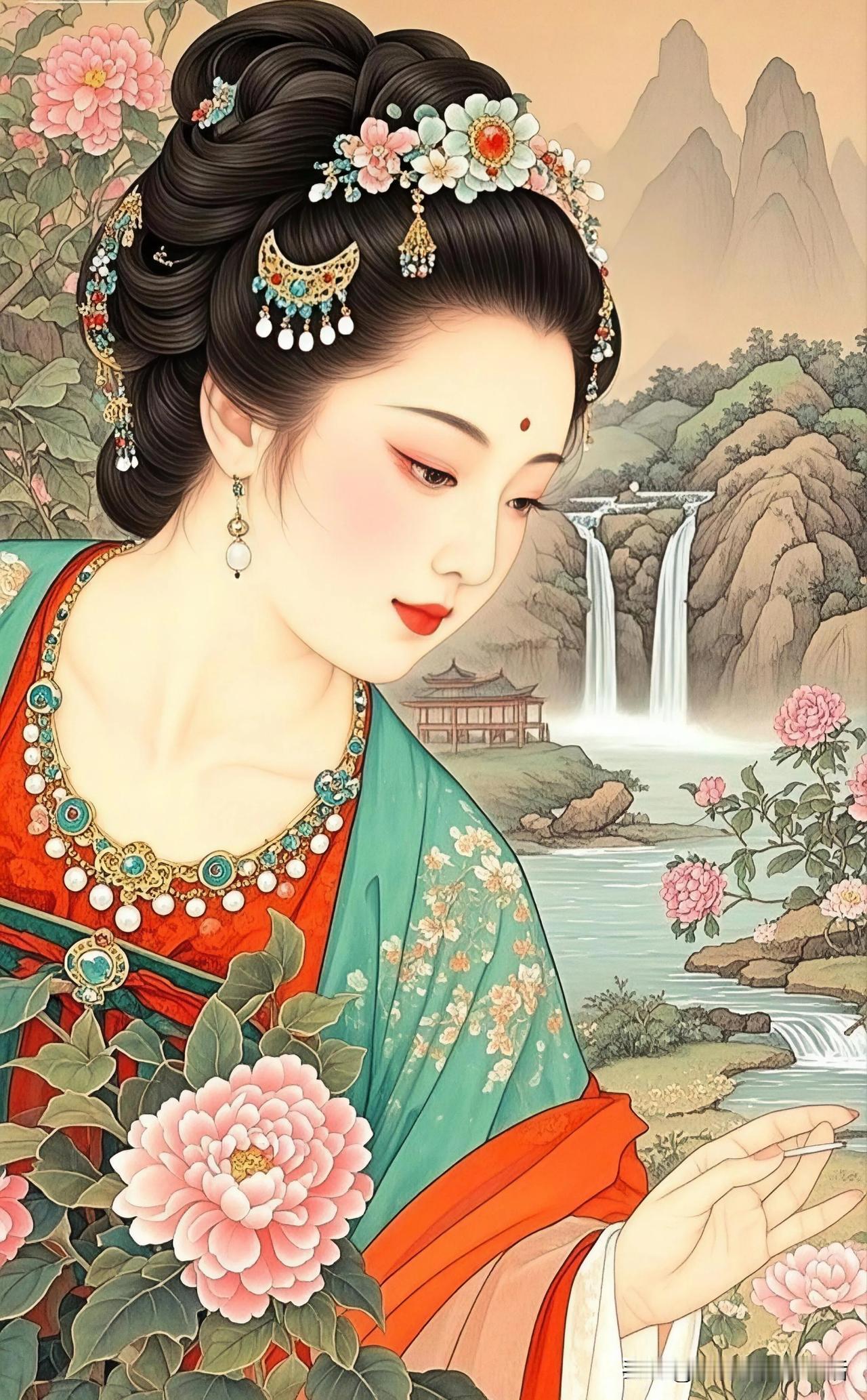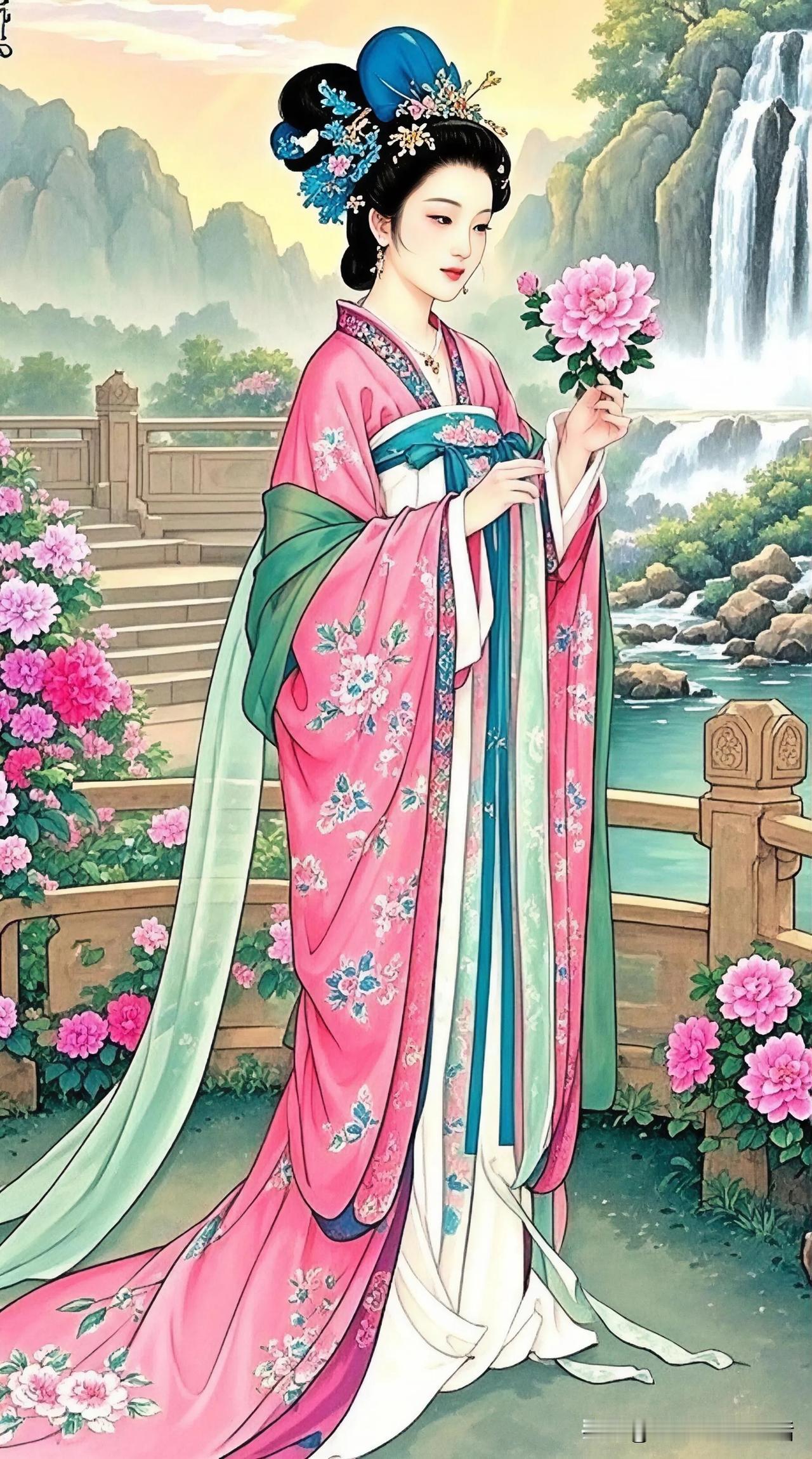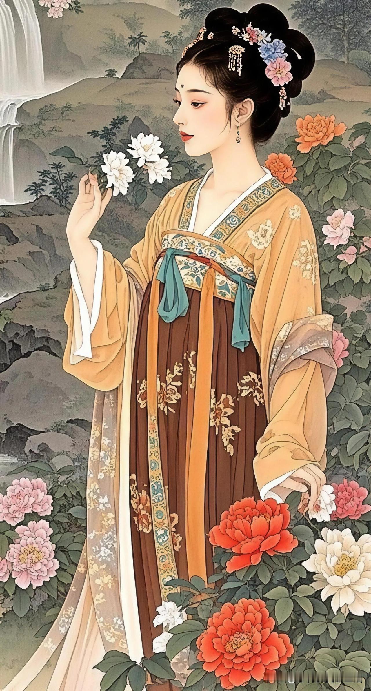 古风美人与自然和谐共处,花团锦簇,美不胜收!