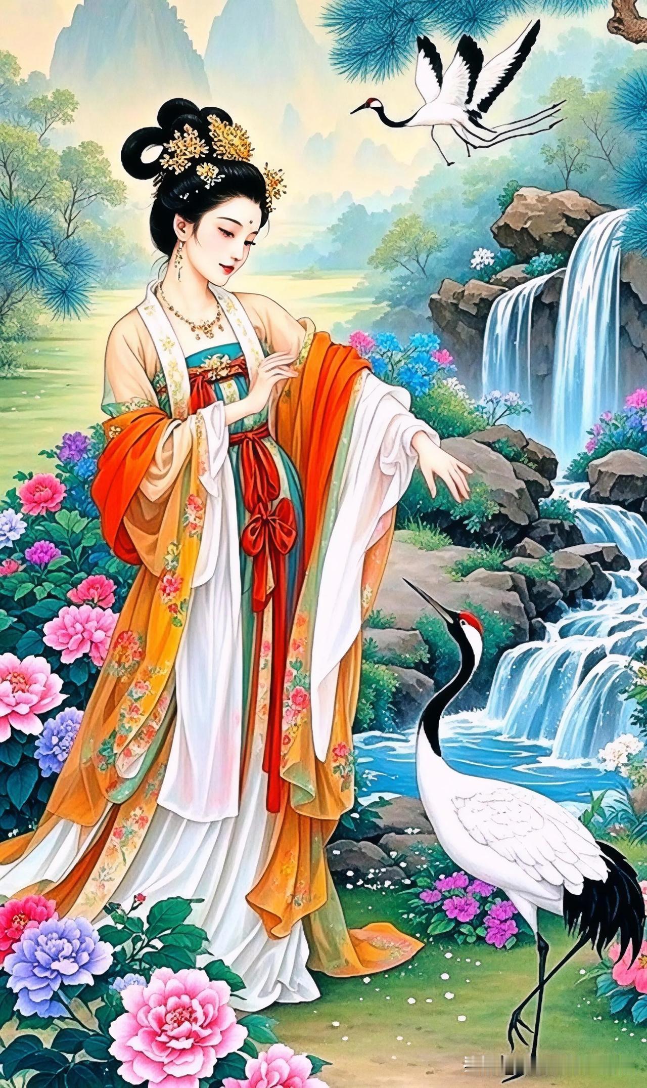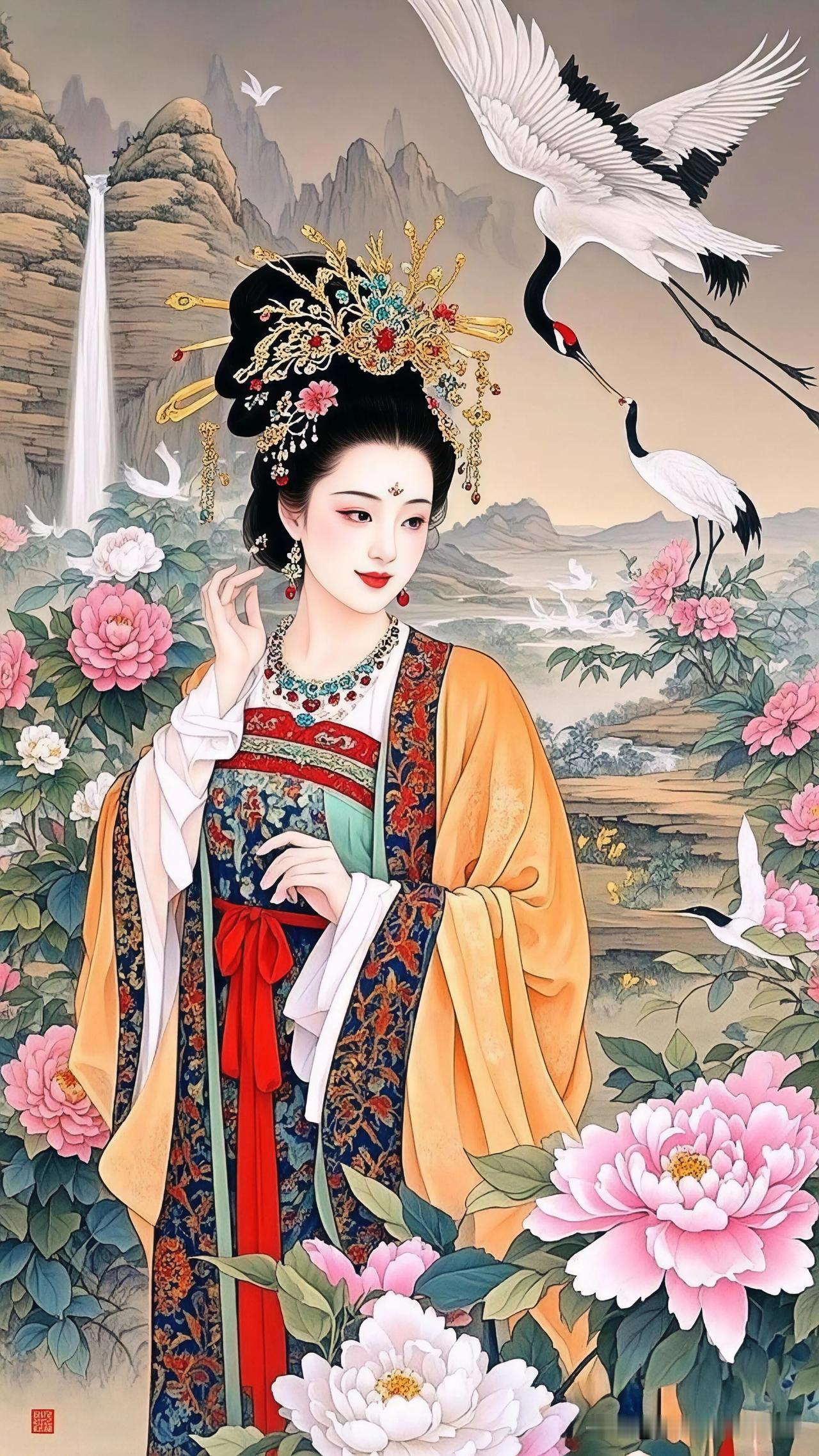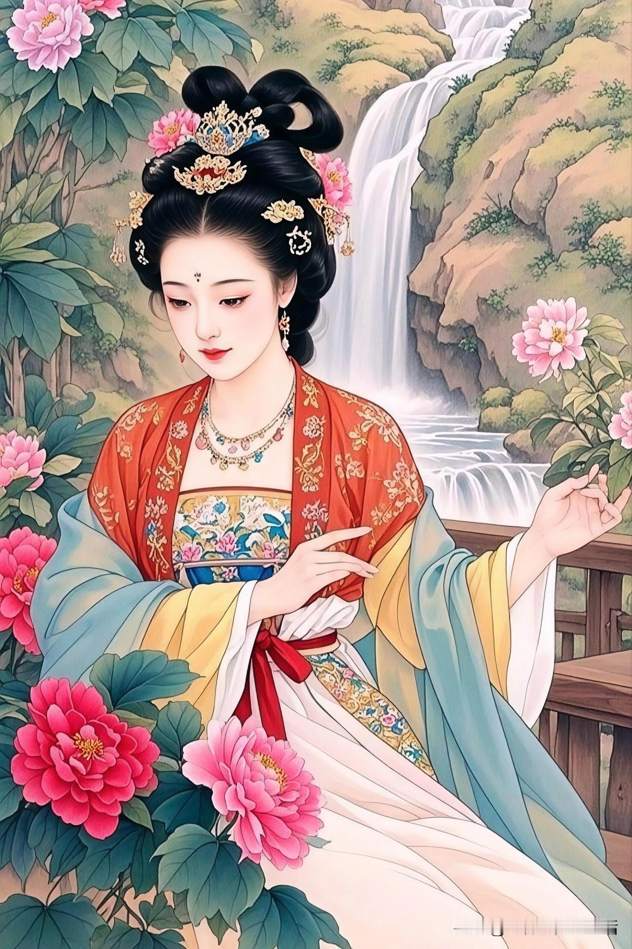 古风美人与自然和谐共处,花团锦簇,美不胜收!