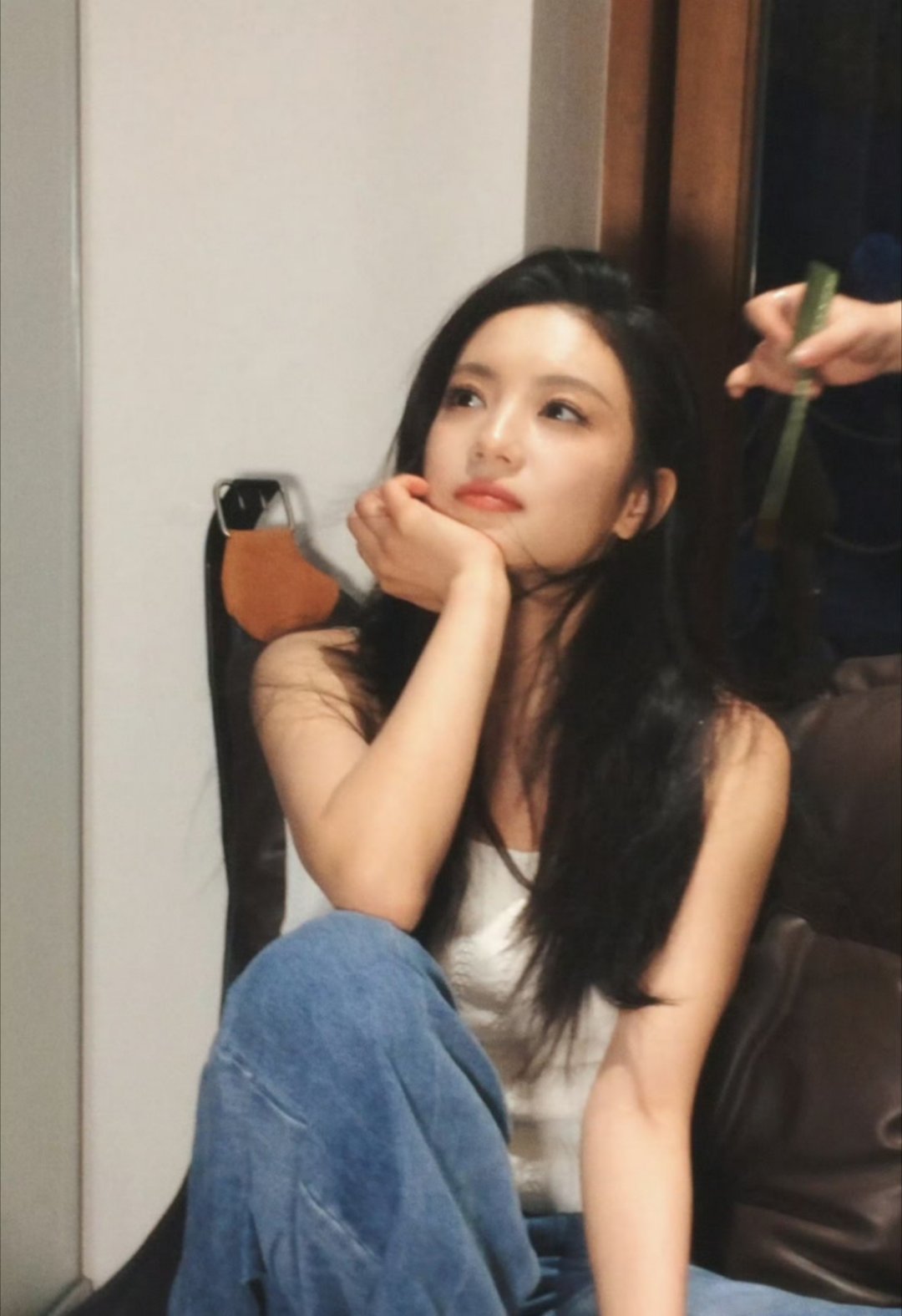 穿了做旧牛仔裤,戴了眼镜的杨幂。不走大幂幂,改走精致路线?