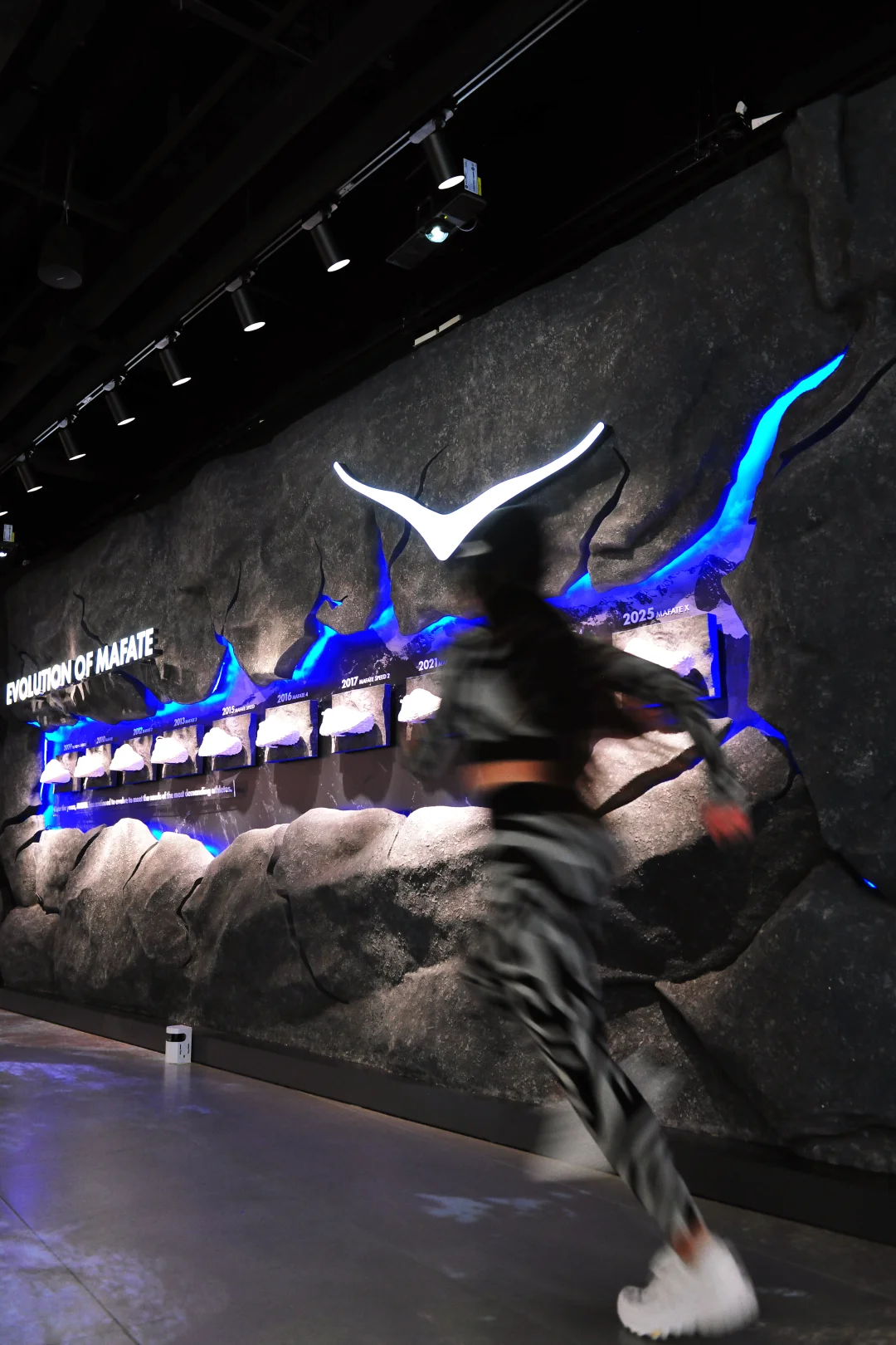 我靠在墙边看了很久,完成跑后拉伸。空间里没有“请勿触碰”,反而鼓励你感受。指尖划过一些凸起的山脉纹理,脚下是柔软、沉默的地面。