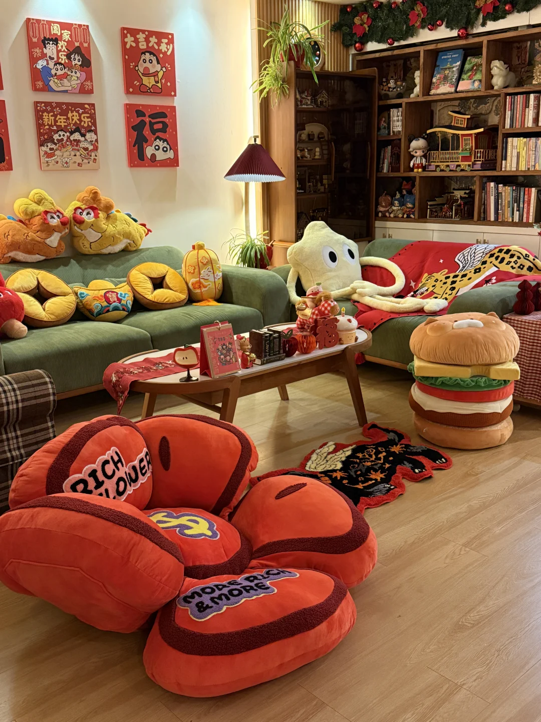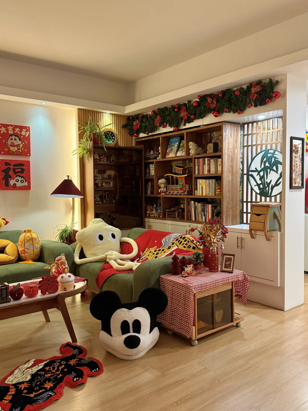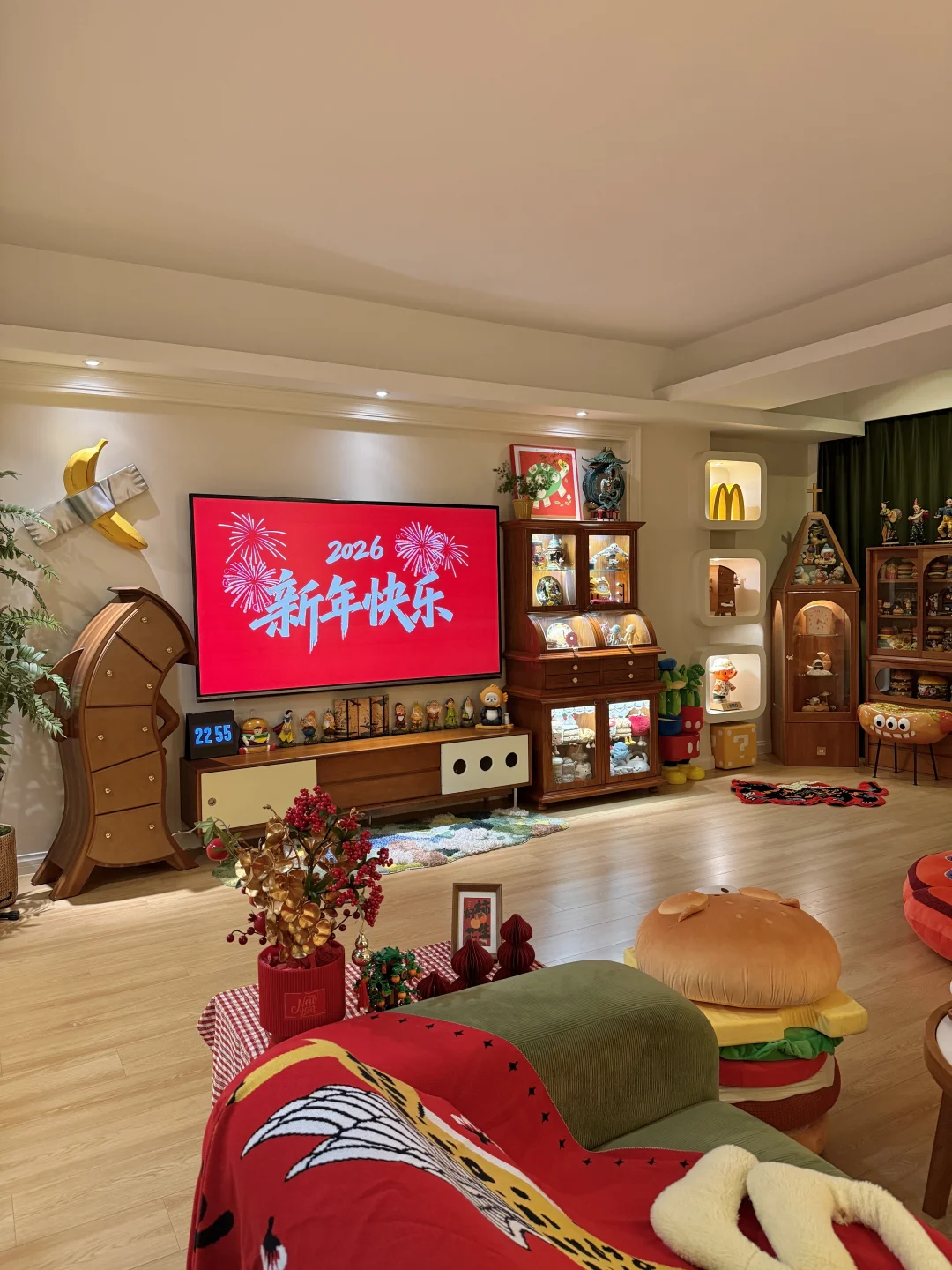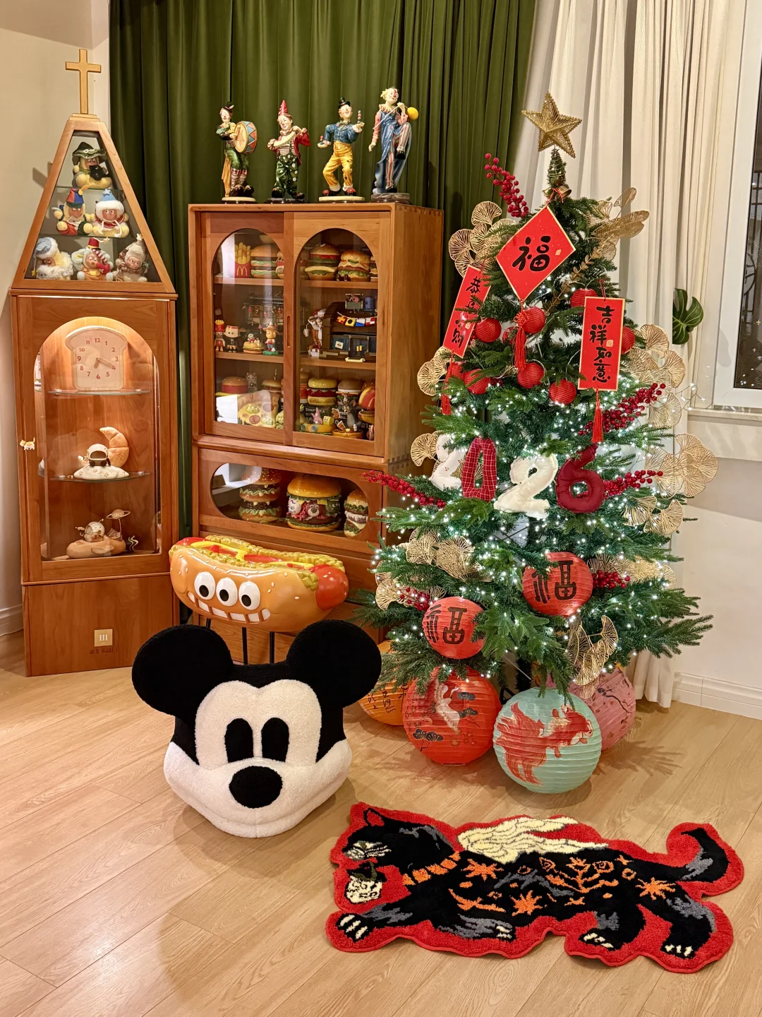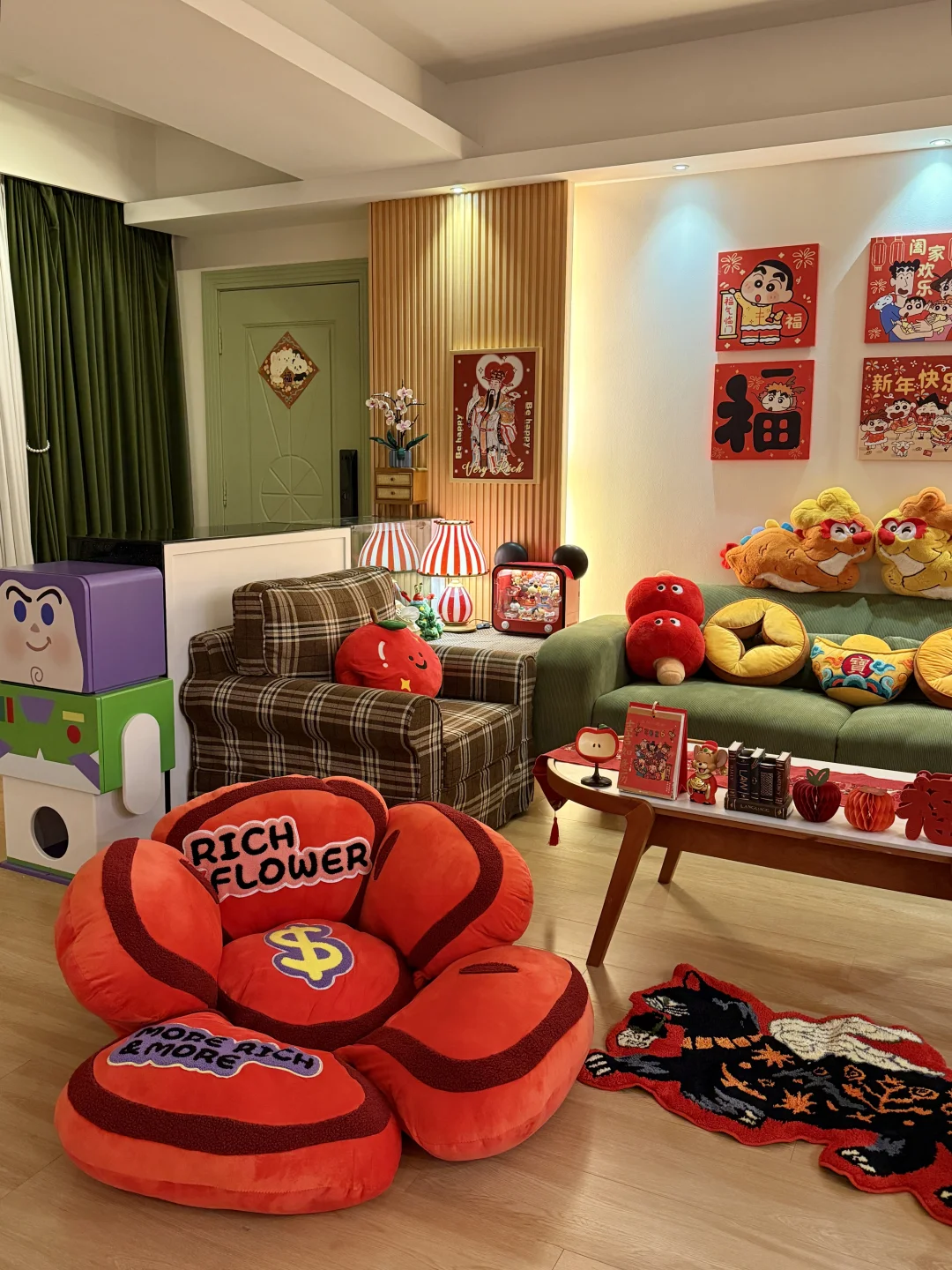 2026新年氛围感客厅布置上线啦🧧 圣诞树挂满红灯笼,年味招财装饰齐登场🐾 沙发被可可爱爱的国风抱枕包围! 90后幼稚鬼的家就是要可可爱爱~