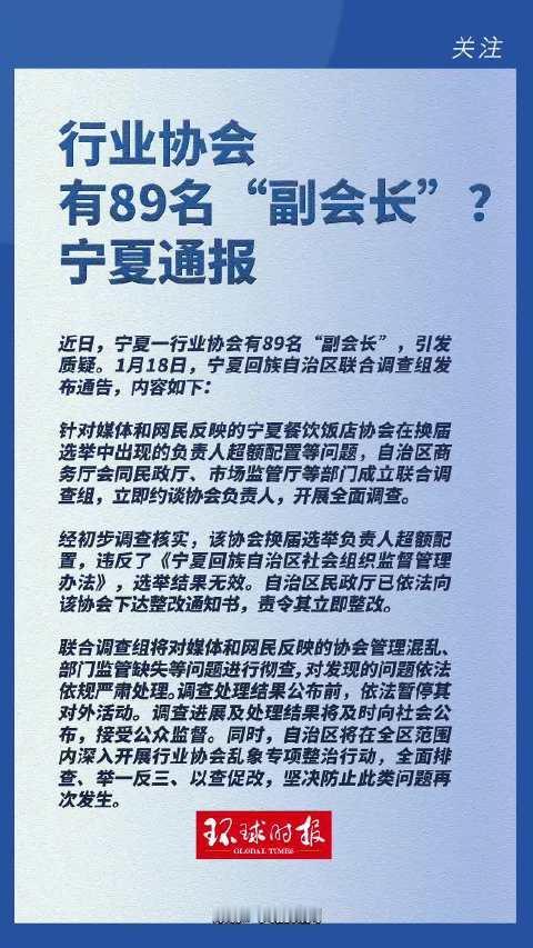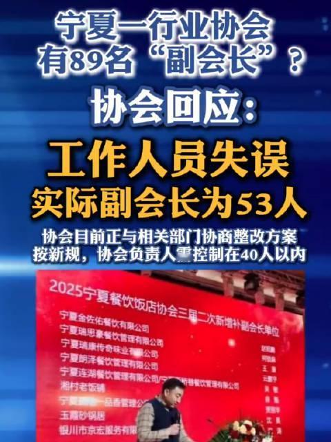 行业协会有89名“副会长”:一场自欺欺人的头衔闹剧 宁夏餐饮饭店协会89名副会长的荒诞戏码,终以官方通报“选举无效”草草收场,堪称行业协会异化的绝佳笑料。一顶顶副会长头衔批量批发,比饭店菜单上的菜品还繁杂,让“副会长”沦为人人可戴的廉价饰品,尽显权力变现与形式主义的丑陋。 协会先是炮制89人奇观,遭质疑后又甩锅“第三方运营失误”,将荒诞归咎于统计错误,试图用“实际53人”的辩解蒙混过关。所谓“未获取新规”的托词,不过是漠视规则的遮羞布,毕竟40人上限的规定,难不成比饭店的招牌菜还难查询? 头衔泛滥背后,是权责的空心化与利益的暗箱操作。89人共治沦为无人负责,协会本该服务行业,却醉心于“帽子生意”。官方的雷霆整治虽及时止损,但这场闹剧已撕开部分社会组织的遮羞布——当协会忙着批发头衔,而非深耕行业,最终只会在自导自演的荒诞中,耗尽公信力。