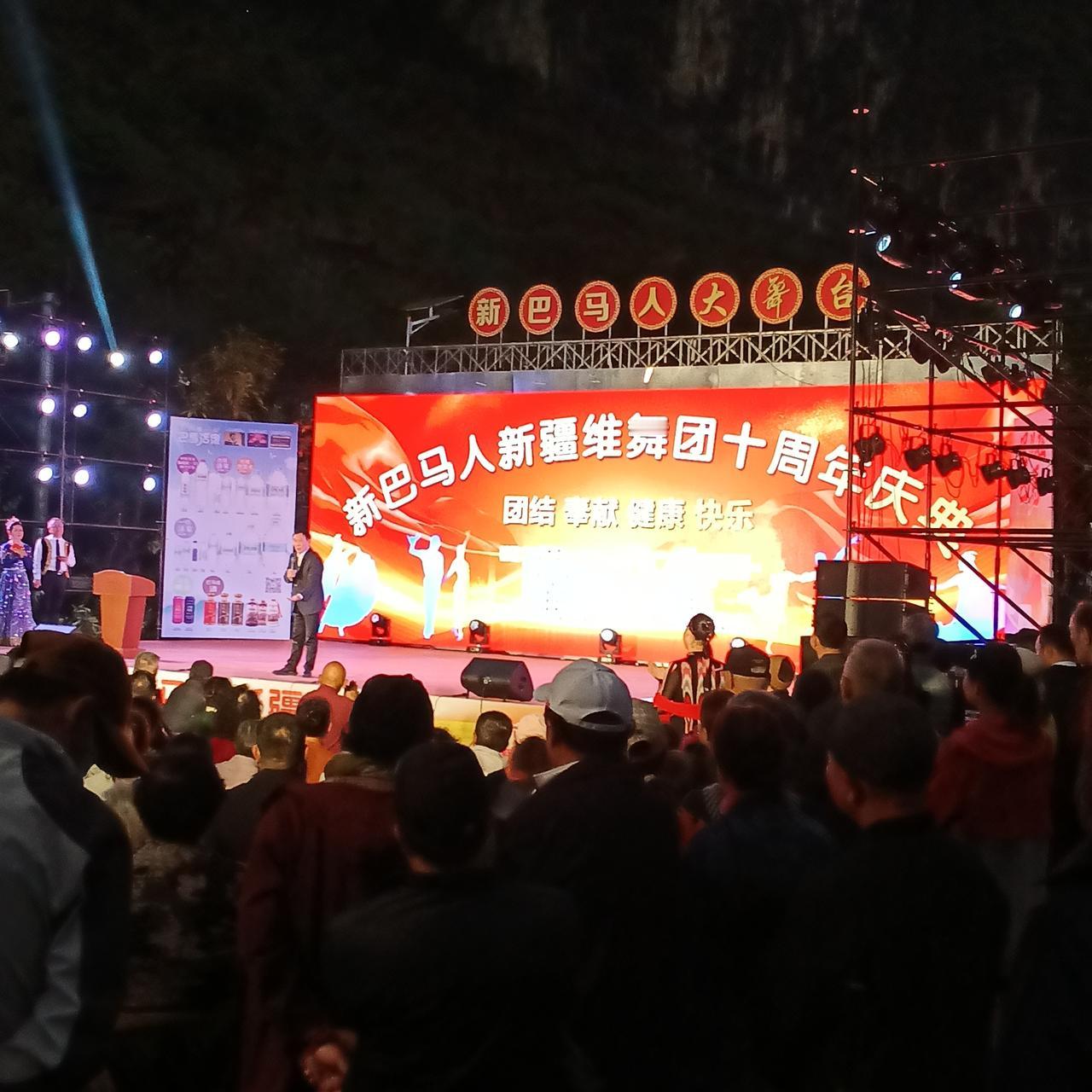 新巴马人新疆维舞团 十周年庆典~正在进行 时间: 今晚(1月18日)18:30. 地点: 广西巴马百魔洞附近新巴马人工作室门前,新巴马人大舞台。 正在举办一场庆典。 庆典原由:新巴马人新疆维舞团10周年 庆典开场以几位辛巴马人的分享开场。 方便的朋友速来欣赏观看。