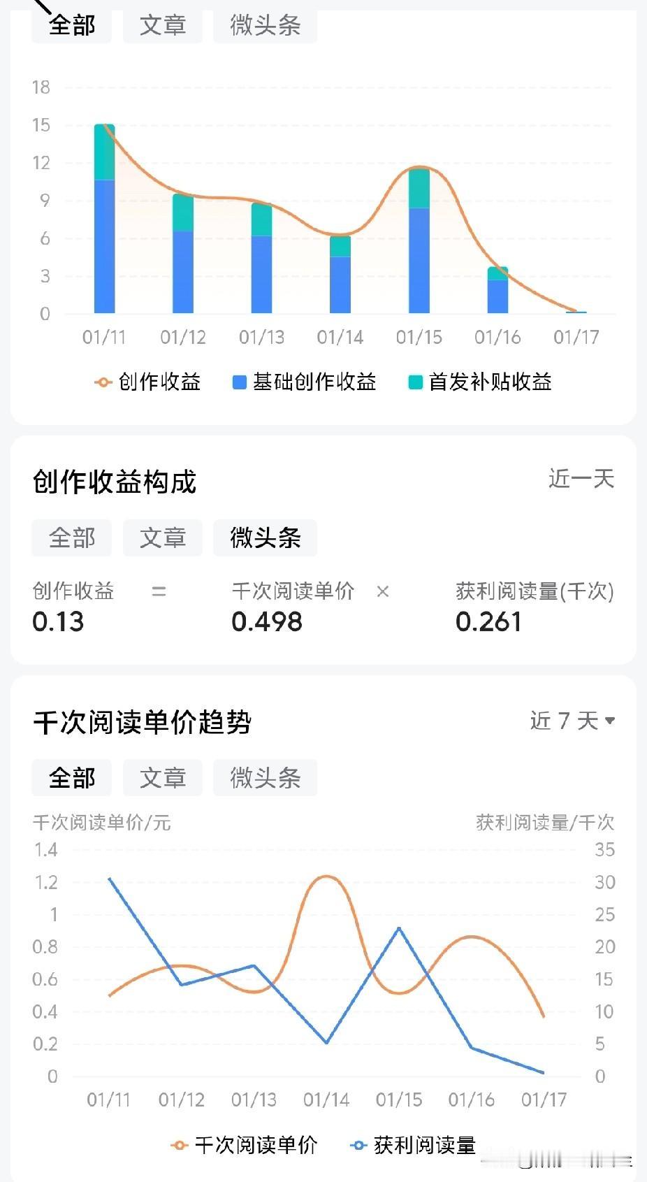我被头条取消“首发激励”14天,千次阅读单价0.498元,可最惨的事还在后头! 一周前,为了写征车文 我每天绞尽脑汁 总算功夫不负有心人 虽然没有50多万曝款 但流量还算稳定 起码每小时能破千 然而有得必有失 我忘记关掉头条的首发激励开关 前后最多不过一周的时间 头条就像盯上了我似的 直接给我下发一个通知 取消首发激励14天 单价其实并没有下降什么 千次单价有“0.498元” 没被强制关停首发激励前 基本单价也不过3毛到6毛 最高时偶尔也有过1块 但最惨的事不是单价 而是流量没了 现在每小时展现量才30次左右 这比“杀人诛心”还难受 再这么下去 我也想考虑销号了 你们说,没流量还怎么玩
