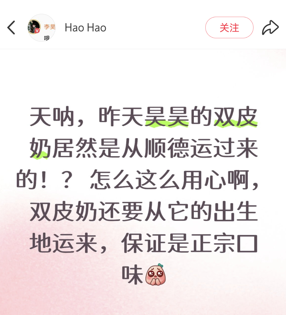 十个勤天李昊 我还担心杭州的双皮奶不正宗,居然是从顺德冷链运过来的Cr 小红薯🍠
