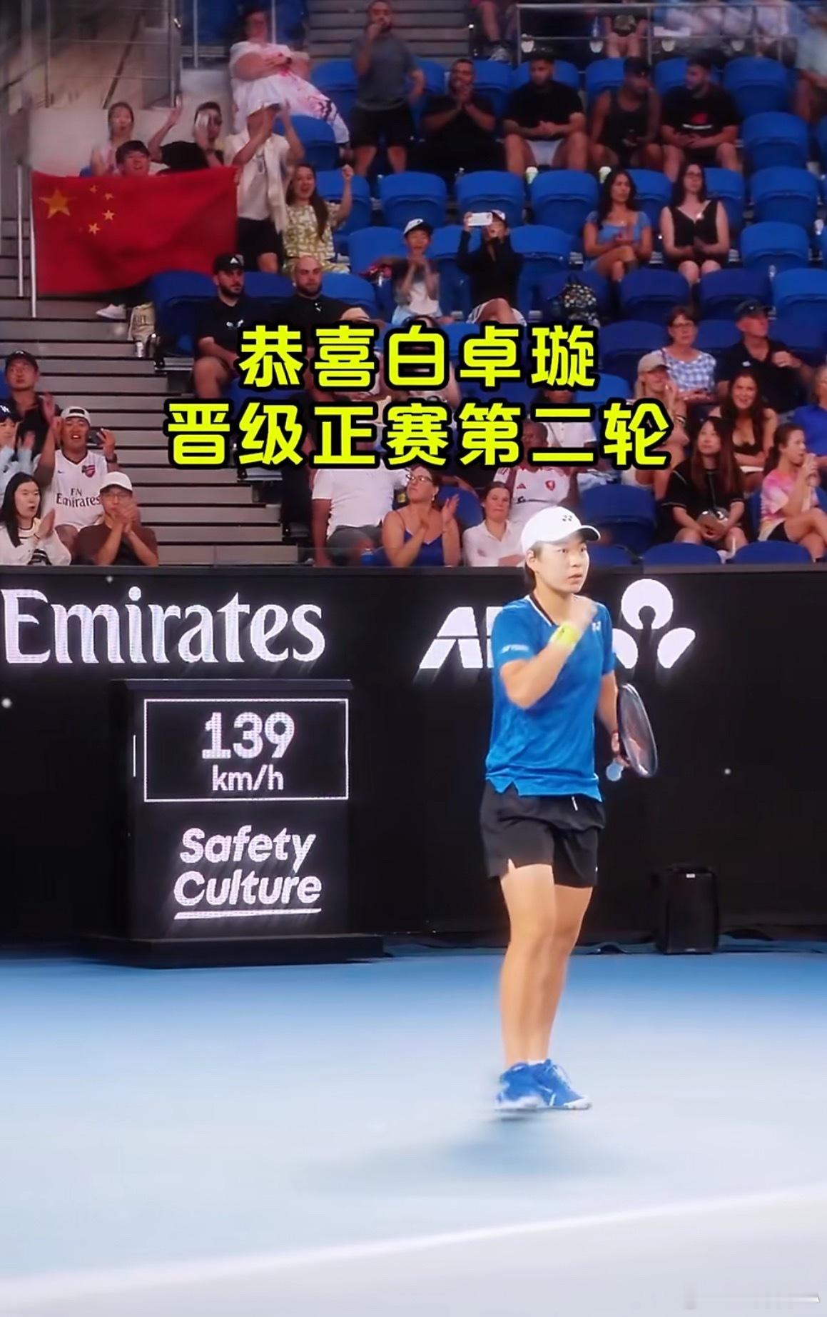 【白卓璇晋级澳网第二轮】澳网女单白卓璇晋级次轮澳网2026 女单首轮,中国选手白卓璇苦战三盘,以6-4/ 2-6 /7-6(10)击败帕芙柳琴科娃,晋级次轮,太棒了!下一轮她将迎战萨巴伦卡。