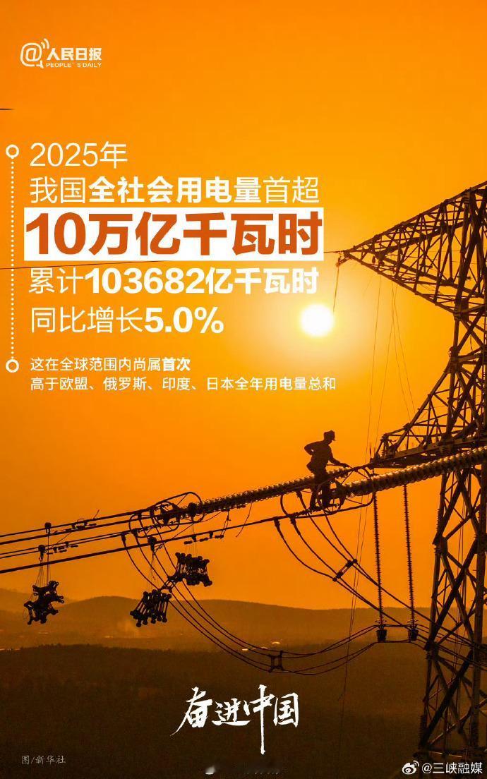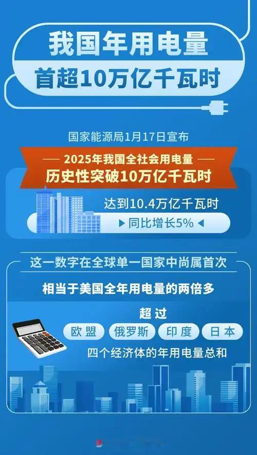 2025年中国全社会用电量突破10万亿千瓦时,这一数字在全球单一国家中尚属首次,