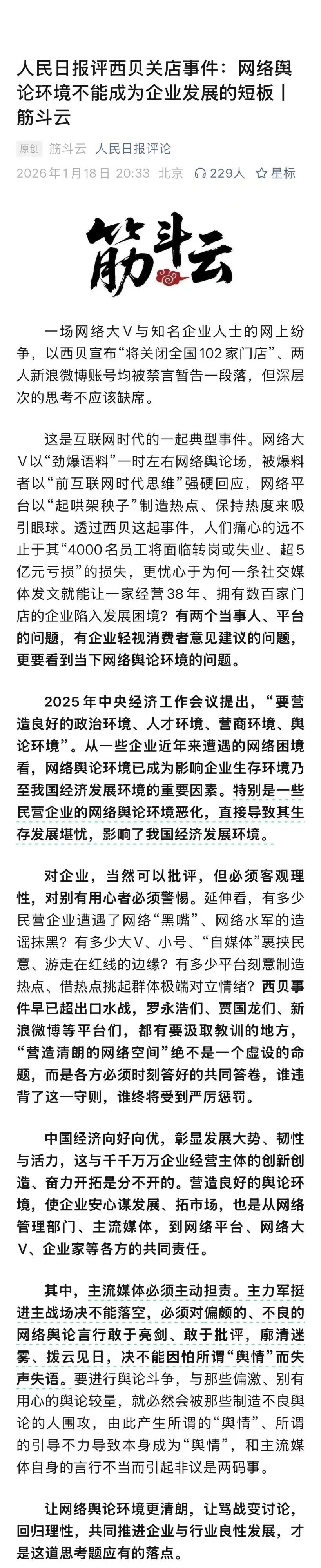 终于等来了权威声音:人民日报评西贝关店事件。