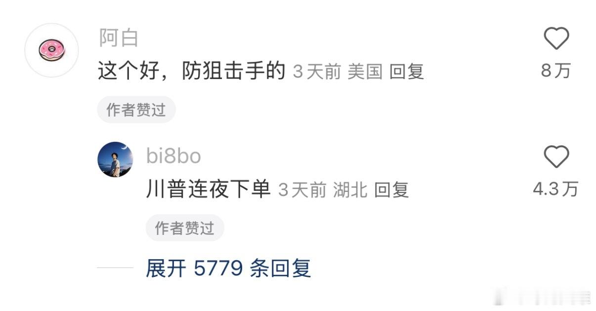 我不行了。。我爸说他给车买了个星空顶网友:防狙击手的,川普连夜下单