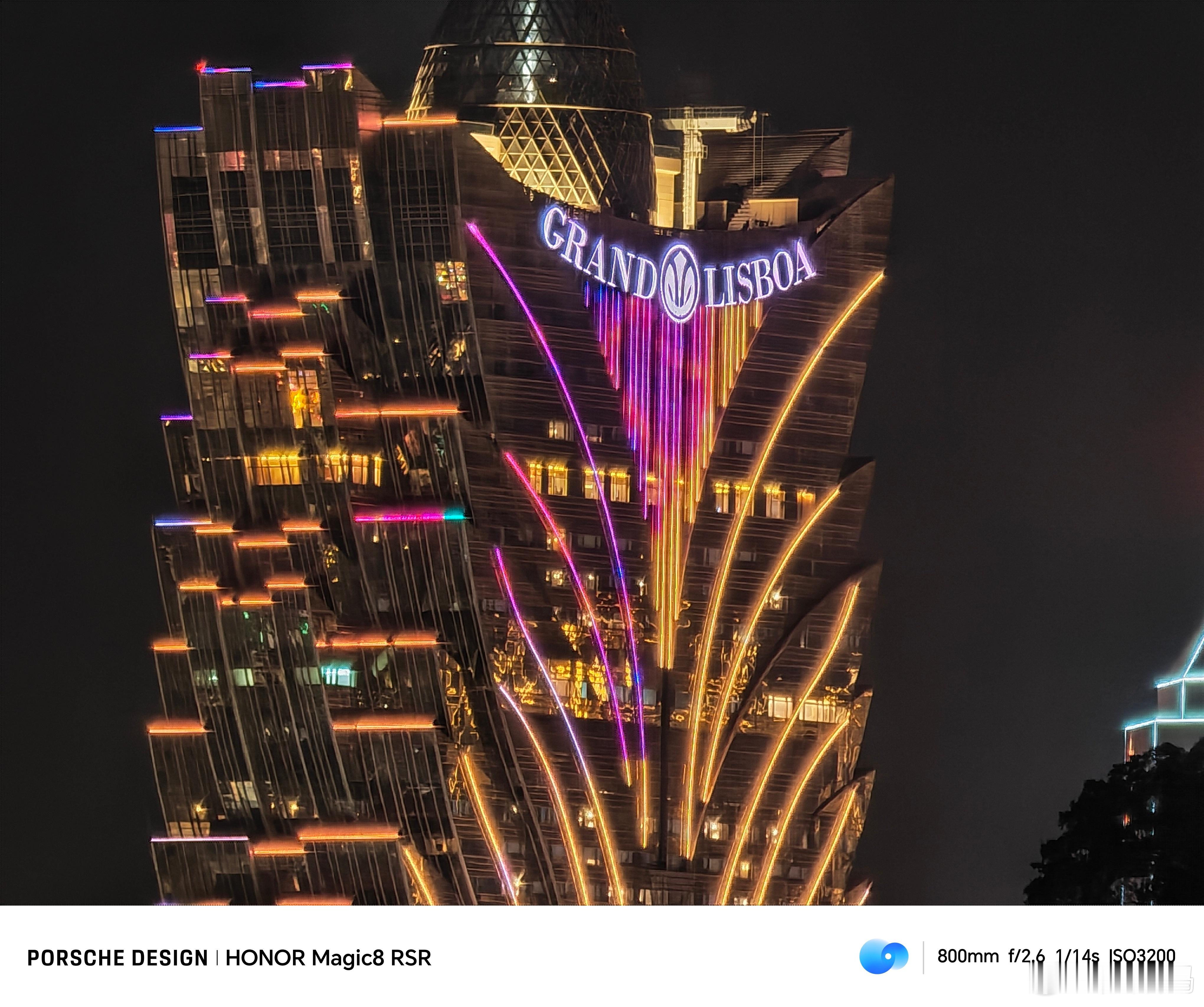 荣耀Magic8 RSR的长焦表现已经够顶了,再加上增距镜的加持,就算隔海拍澳门塔、新葡京都毫无压力,效果大家直接看看。 珠海·珠海国际会议中心