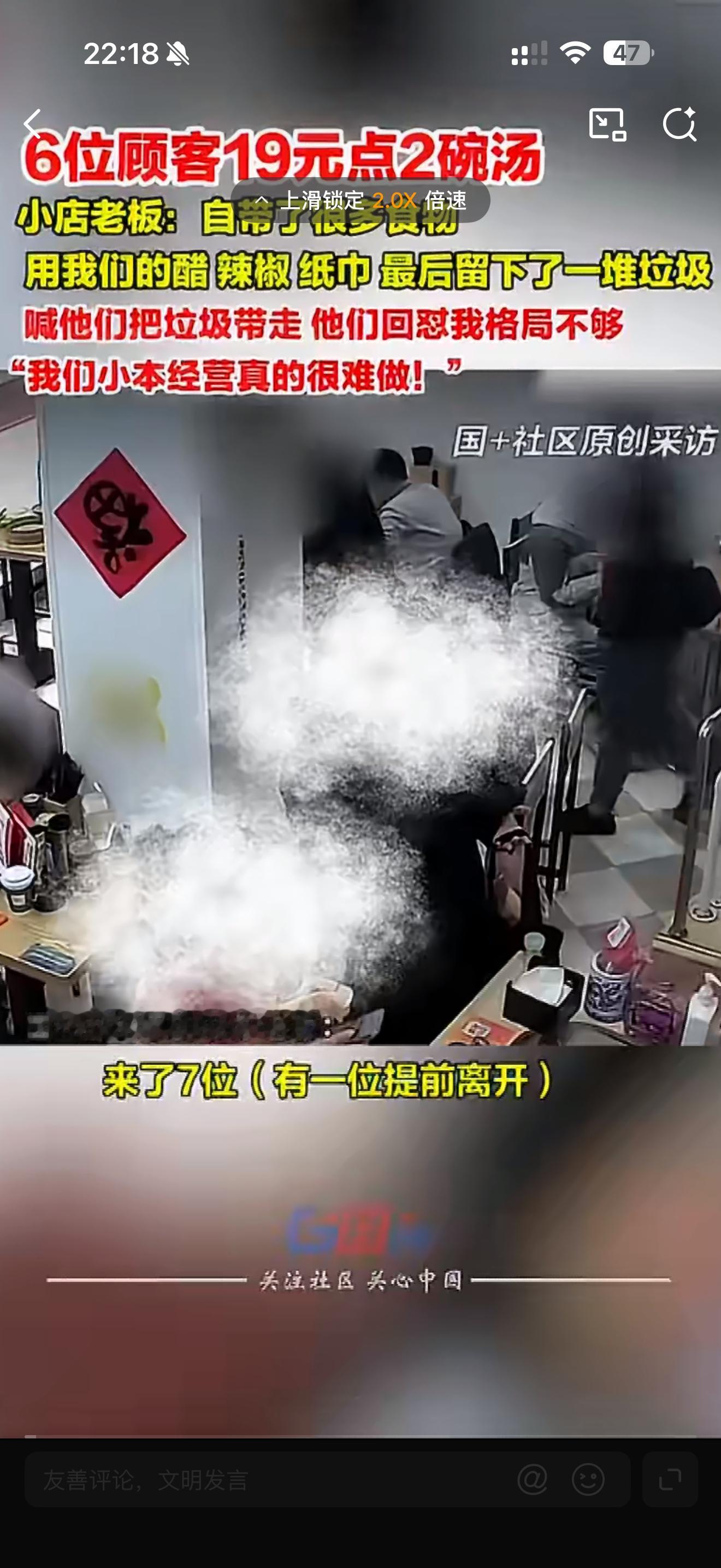 6人就餐仅花19元老板要求带走垃圾这六个人好意思和人家老板是格局,而且我想这不是一次两次了,肯定次数对了,老板受不了才这么说的。