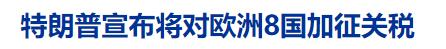 一招鲜吃遍天! 特朗普宣布,将对欧洲8国加征关税。 不但加征,同时他直接摆出了加征的目的:此关税措施将持续实施,直至达成完全、彻底收购格陵兰岛的协议。 8个目标国为丹麦、挪威、瑞典、法国、德国、英国、荷兰、芬兰,对其出口至美的所有商品加征10%关税。 上述国家全是反对美收购格陵岛的,特朗普还宣称,如果以后还有他国家反对,不排队增加名单。 这就是明抢啊,这样下去,美终将再次搬起石头,砸到自己的脚。 [捂脸]