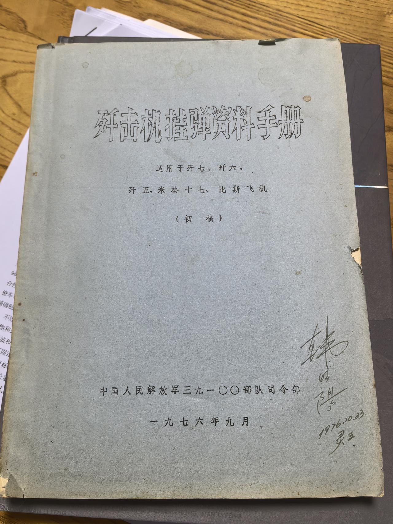 抗美援朝英雄飞行员韩明阳的技术手册——这本韩明阳亲笔签名的歼击机挂弹资料手册,是几年前从旧书市寻获的。韩明阳在1951年11月率队对大和岛的轰炸,是一次极为成功的作战行动。这本册子用大纸单面印刷后折叠成双面效果,当是空八师临时制作的技术资料。