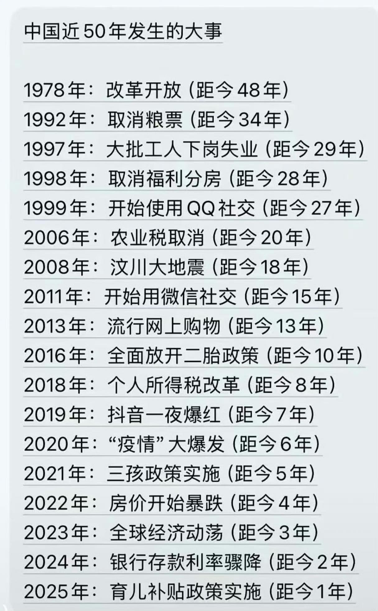 中国近50年发生的那些大事。