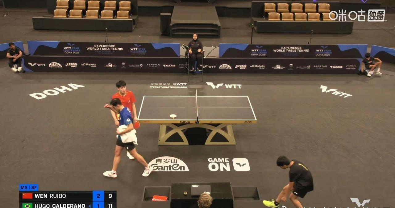 温瑞博🇨🇳稳住!再拼一局[奋斗]! 前三局温瑞博🇨🇳11-9,8-11,11-9领先雨果🇧🇷! 18岁的温瑞博7-5那分变线漂亮,两人对拉,小温一点儿都不怵果子哥,好看,小温继续燃[奋斗]! 咦?不好!第四局温瑞博🇨🇳9-11又被雨果🇧🇷拿下了。 这是WTT球星挑战赛多哈站男单决赛,继续关注小温大战雨果[奋斗]!