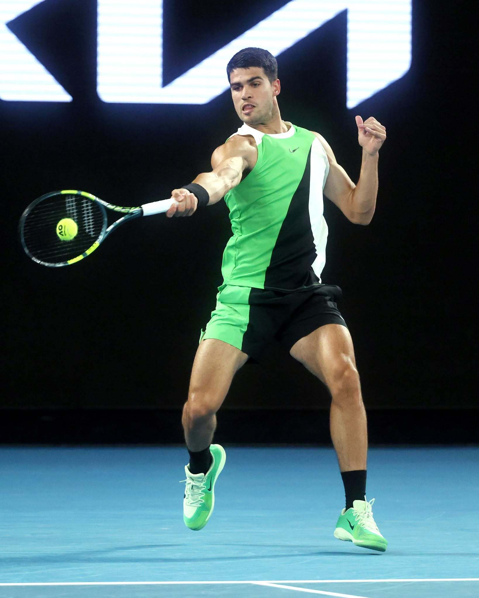 澳网阿尔卡拉斯迎开门红 耐克每年给阿卡阿尔卡拉斯 的衣服都代表了一种风格,形容不来,但是比polo有张力的多,成熟的阿卡是耐克家最好的模特,后面乃至在后面,一定要把阿卡给抓住了这很澳网