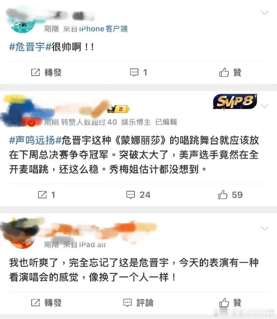 危晋宇歌抛脸 深情时唱尽少年失意,跨界时玩转美声说唱,电子曲风里跳出利落气场!华晨宇都赞“忘了他是唱美声的”,这就是不被定义的舞台魔力。 声鸣远扬