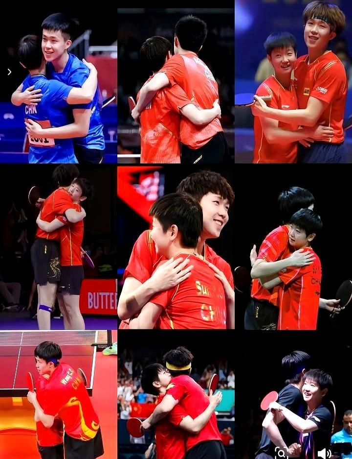 多哈夜场灯一亮,王曼昱刚把大藤沙月拍下去,林诗栋那边也啃下关键分。俩人没庆祝,直接冲到一起,抱得死死的。九年血汗,一把搂住,比任何口号都响。 50万美元奖金听着多,分到每个人头上也就几块砖。63站赛程像连环套,喘口气都奢侈。王楚钦、孙颖莎干脆躺平养伤,年轻人顶上,输张本智和也不稀奇。 老樊振东场边压腿,眼神在说:这活儿还得我收尾。世乒赛百岁,国乒46冠,断档第一,可没人敢松。因为下一抱,可能就在伦敦,也可能在亚运连轴转的九月。 观众看的是赢,他们过的是命。