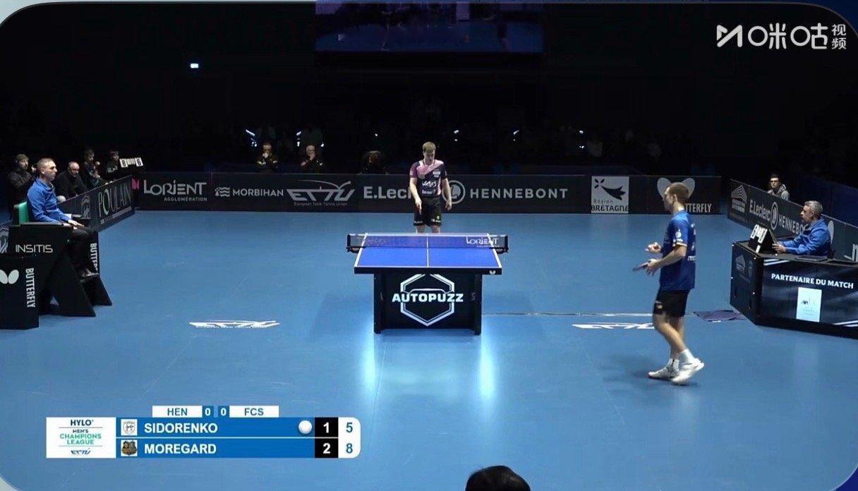 2025-2026欧冠联赛8-4第一回合亨尼邦0-1萨尔布吕肯西多连科1-3莫雷加德(8-11 11-9 4-11 10-12)