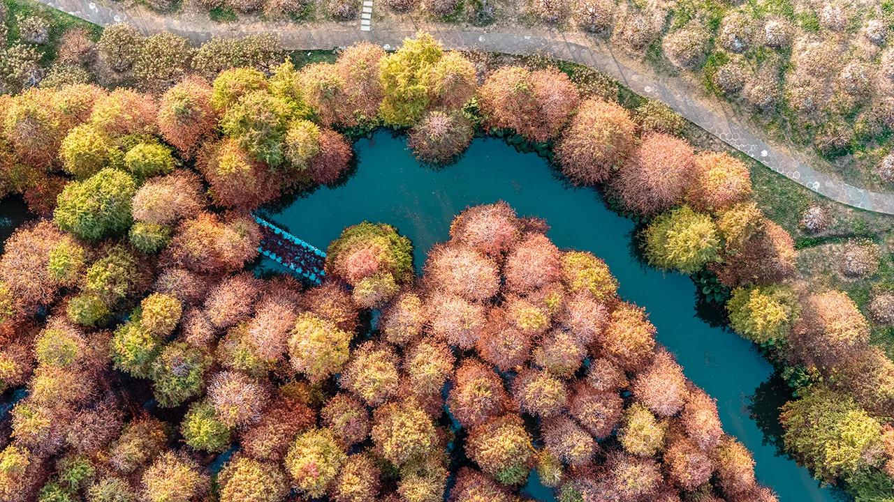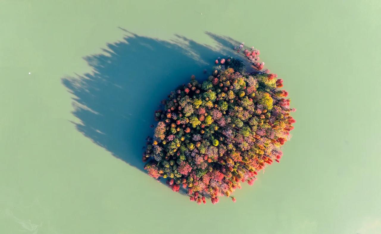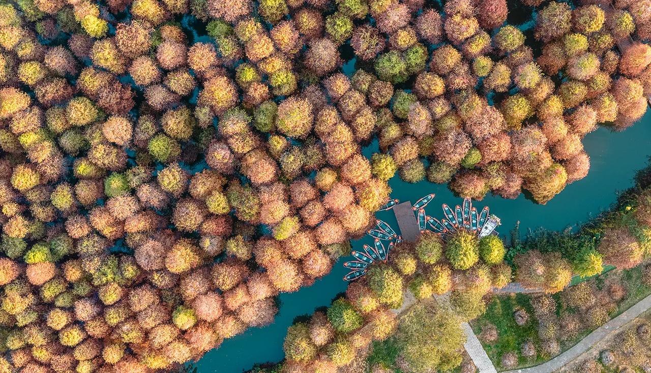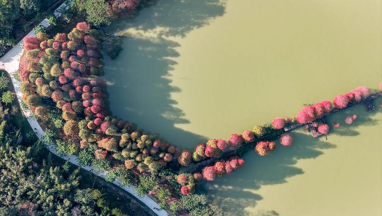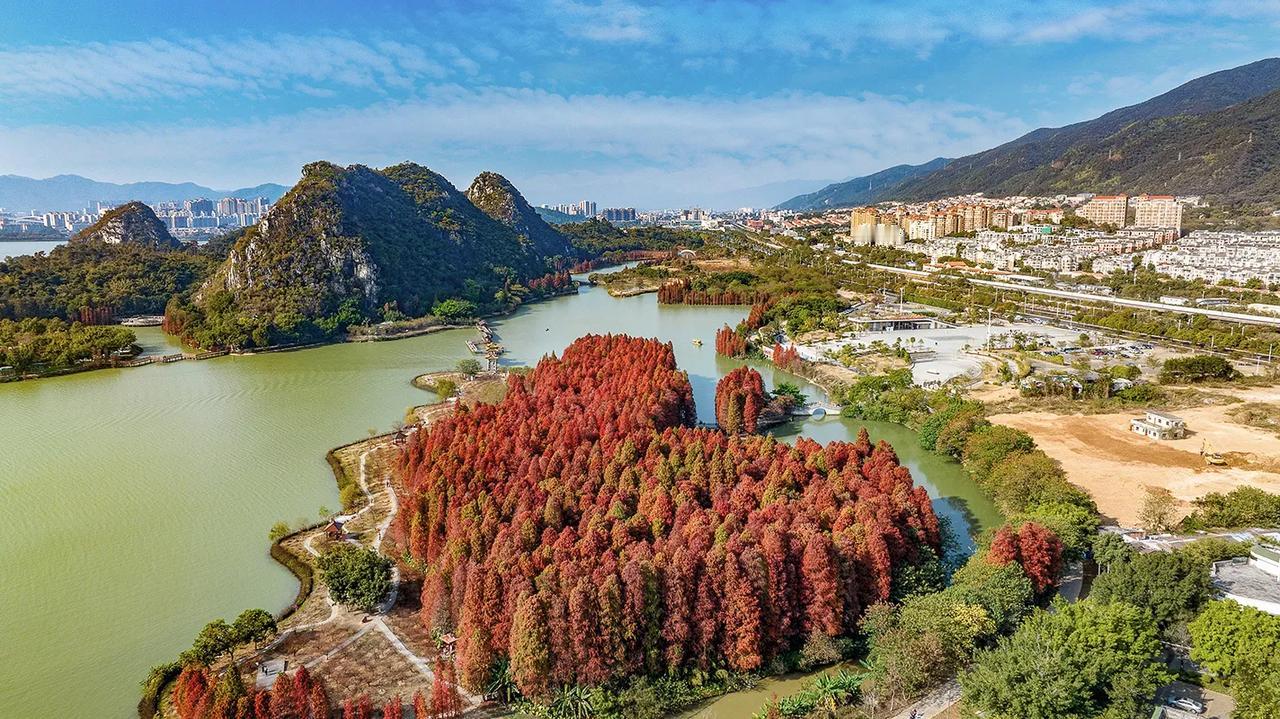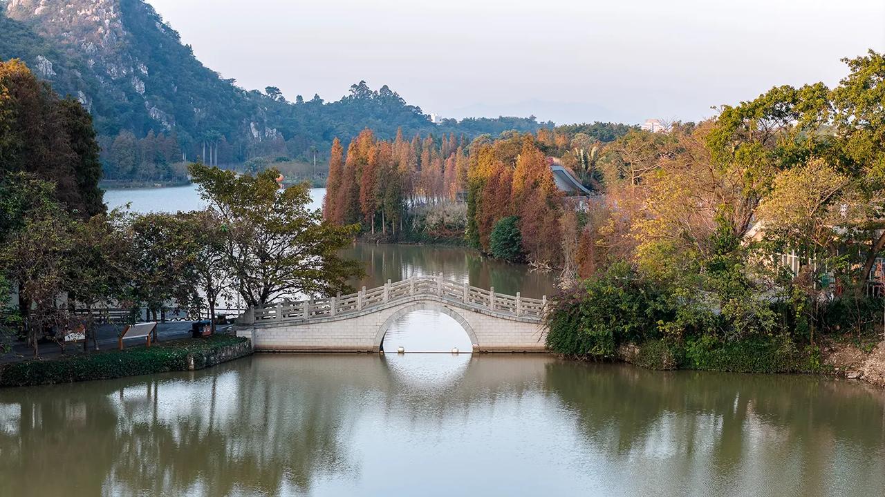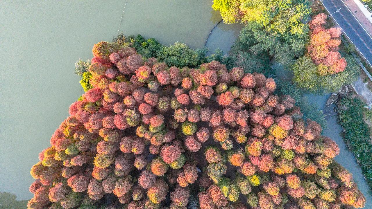 广东肇庆的冬天像油画!在七星岩景区北门,有一大片落羽杉林,树龄超60年,每年的元旦前后,落羽杉林逐渐变黄变红,色彩斑斓、美不胜收!