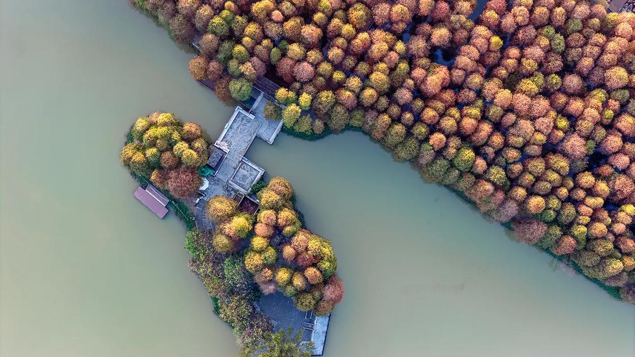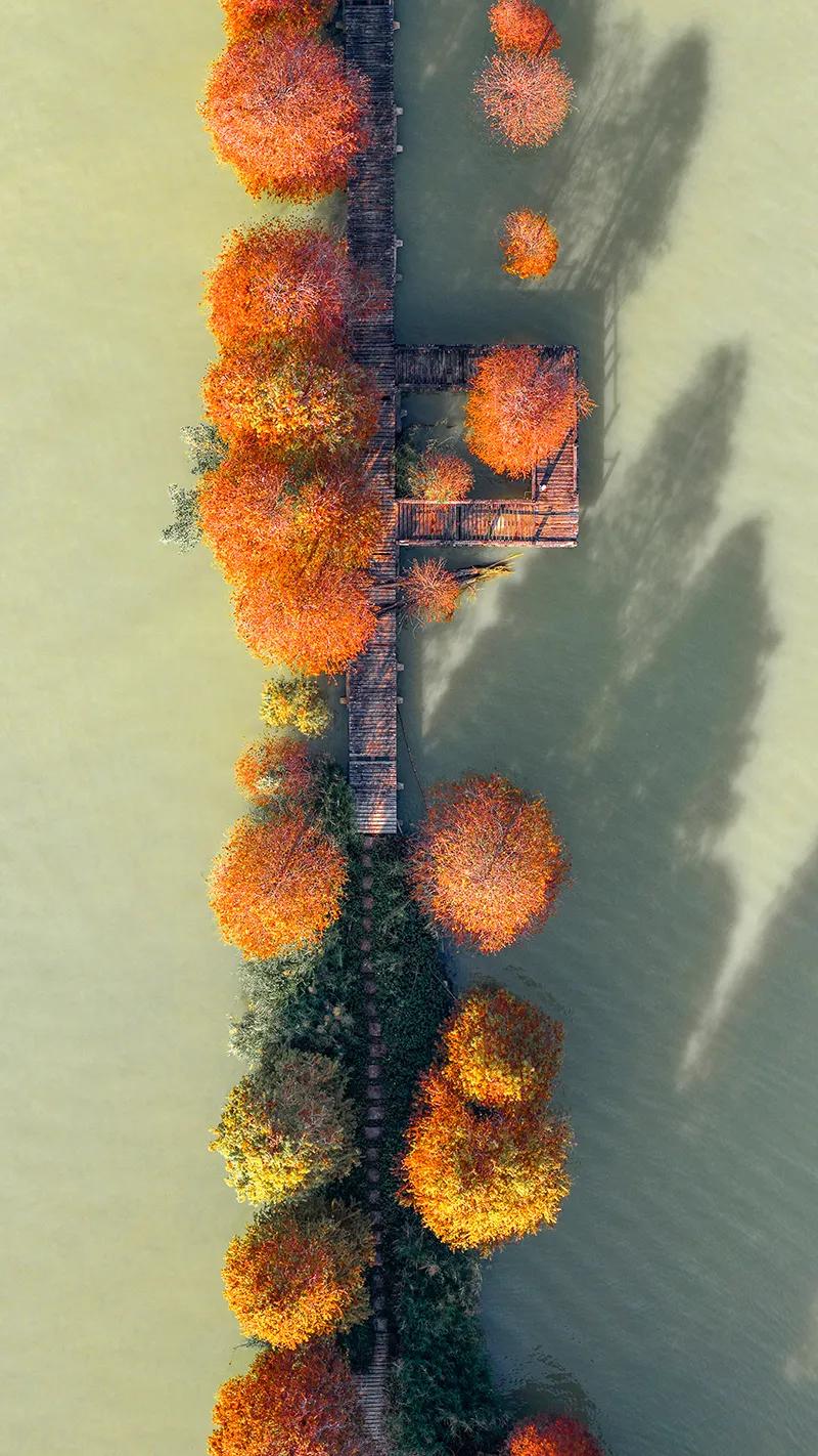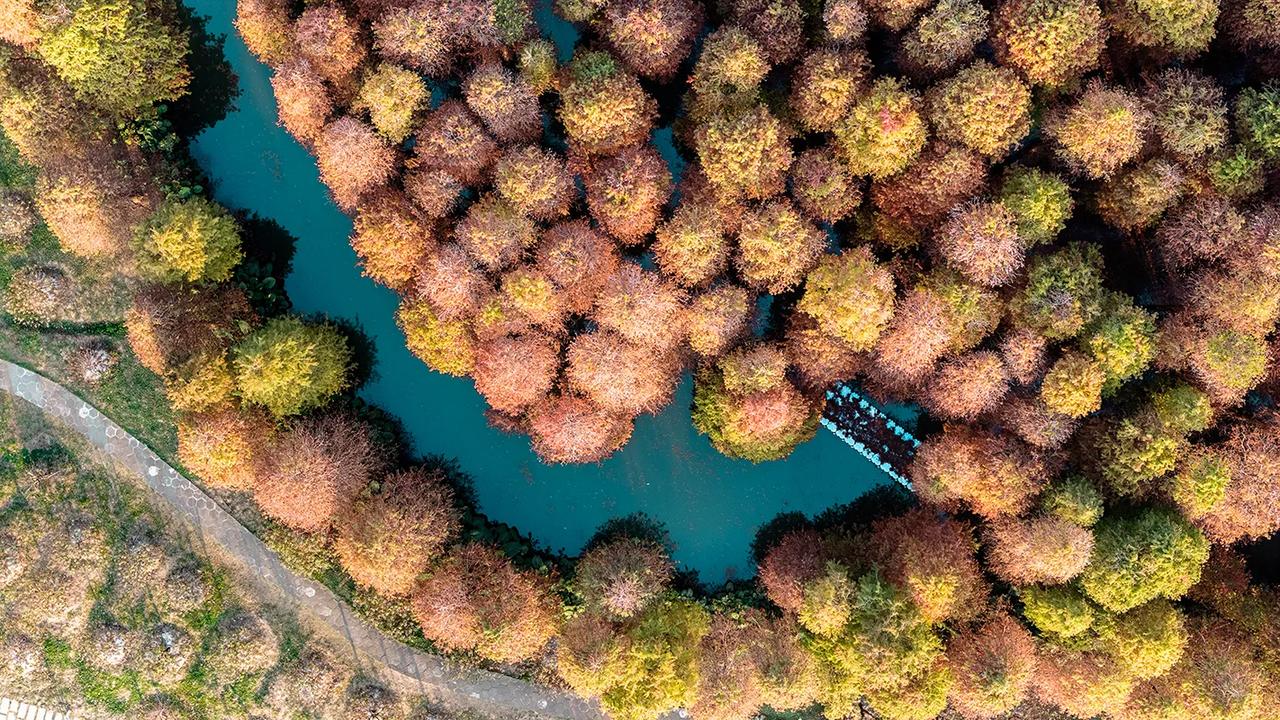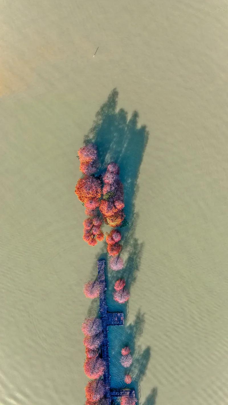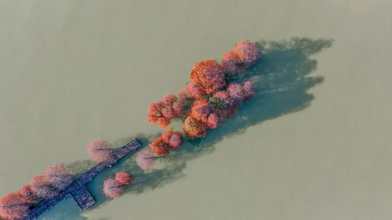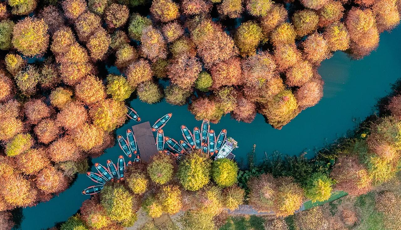 广东肇庆的冬天像油画!在七星岩景区北门,有一大片落羽杉林,树龄超60年,每年的元旦前后,落羽杉林逐渐变黄变红,色彩斑斓、美不胜收!