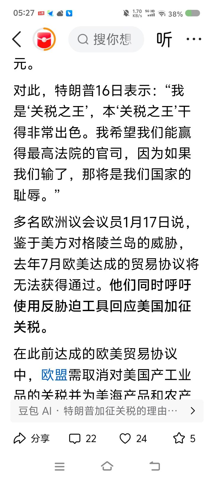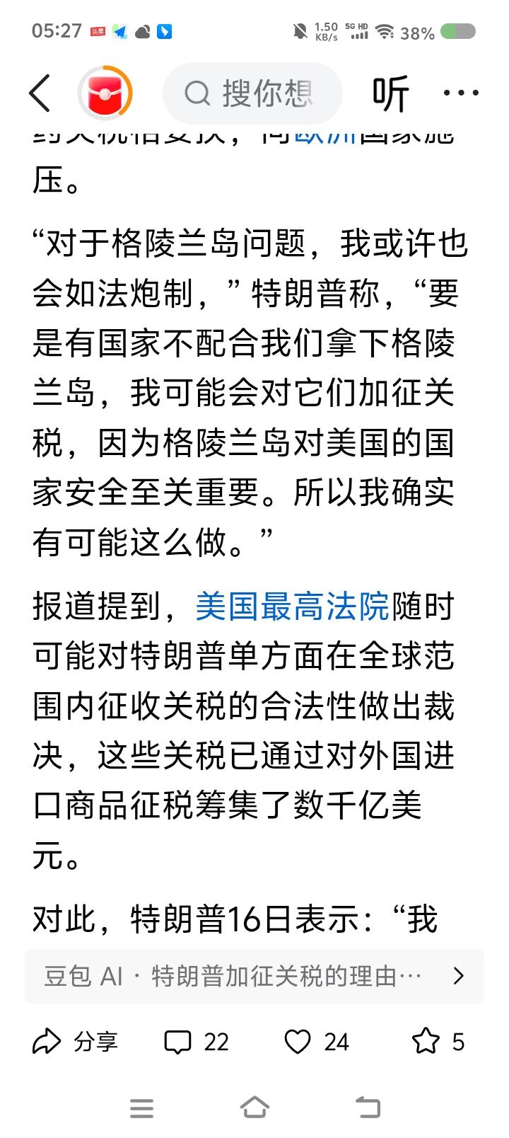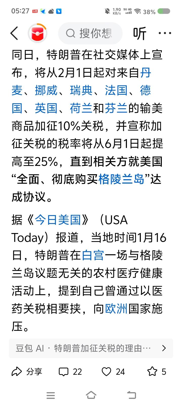 特朗普为什么发布黑白照片?—— 据报道,近日,特朗普发布黑白照片,自称“关税王”。一方面,他对欧洲一些国家加征关税,“直至它们就美国购买格陵兰岛达成协议”;同时,联邦法院可能对他征关税的合法性作裁决。特朗普宣称:“自己官司败了,将是美国的耻辱。” 点评: 特朗普发布黑白照的原因很清楚了:威胁国内外反对派。 他忘了一个逻辑问题:既然是买格陵兰岛,那说明它不是美国的。为何强买强卖?因为美国还活在前几个世纪里,西进运动西到了欧洲。美国的战略是:一手美元,一手大炮,不服就干!管你是所谓盟友、敌人!
