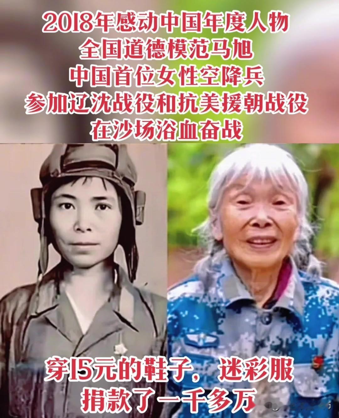 看到这位老人的事迹,非常感动。老人名叫马旭,1933年出生于黑龙江省哈尔滨市木兰县,1947年14岁参军,参加过解放战争和抗美援朝。 马旭是中国首位女空降兵,湖北省军区离休干部,2018年向她的家乡黑龙江省木兰县捐赠毕生积蓄1000万元支持教育事业。 有网友疑问,一个年迈的老人哪来的1000万?即使不吃不喝也拿不出1000万。其实,捐赠的1000万,除了马旭与丈夫颜学庸的离休工资外(正师级待遇),还有获得的几项发明专利奖,加上夫妇俩生活节俭积攒下来的。