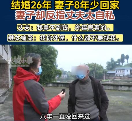 重庆,男子和妻子结婚26年,帮着妻子将3岁的继女抚养长大,继女成家后,妻子去了继女家生活,8年没有回来过,男子找来调解员,希望妻子跟自己回来过日子。可男人妻子却说:丈夫每月就给自己300元,自己要交水费、电费,要走人情,还要给女儿交学费,根本不够用。自己胳膊疼,丈夫却让自己拿单据过去才给钱,丈夫不给钱给自己用,对自己也不好,自己还跟着他干什么? 婚姻的长久,从来不是靠单方面的付出就能维系,尤其是重组家庭,更需要责任、尊重与包容的三重支撑。 重庆的吴大爷,用26年时间践行着继父与丈夫的责任,却在晚年面临妻子离家8年不归的窘境。 吴大爷与杜婆婆组建家庭时,继女刚满3岁,嗷嗷待哺的模样让吴大爷暗下决心,要把这个孩子当成亲生女儿抚养。 接下来的十几年里,吴大爷起早贪黑地操劳,赚钱供继女吃穿用度,支持她完成学业,直到看着她长大成人、成家立业,这份跨越血缘的养育之恩,本应成为家庭和睦的纽带。 可谁也没想到,继女成家后,杜婆婆便搬到女儿家居住,这一去就是8年,夫妻间的联系越来越淡,曾经热闹的家,只剩下吴大爷孤零零的身影。 如今的他,身体早已不复当年硬朗,日常起居都难免遇到困难,孤独的滋味让吴大爷愈发渴望陪伴,他找来调解员,满心期待能劝妻子回家,一起安度晚年。 然而,杜婆婆的回应却满是委屈与决绝,这场看似简单的“妻子离家”事件,背后藏着二十多年婚姻里积累的无数矛盾。 在杜婆婆的讲述中,婚后二十多年,吴大爷每月只给她300元生活费,这笔钱要覆盖家里的水电费、日常人情往来,还要承担女儿的学费,早已捉襟见肘。 为了补贴家用,她不得不自己想办法,家里的猪全靠她喂养,寒冬酷暑还要跑到田里捡螺蛳变卖,起早贪黑的操劳,却始终换不来足够的生活保障。 更让她寒心的是丈夫的态度,后来她胳膊疼痛难忍,想找吴大爷拿点钱看病,对方却坚持要她拿单据才肯给钱,这份冷冰冰的计较,让夫妻间的温情一点点消散。 杜婆婆是三婚,与吴大爷结婚后,对方曾因她未再生孩子心存不满。 而在吴大爷家,她和女儿还长期受到不公对待,家里有肉会被藏起来留给堂姐,堂姐想要电视机,家人直接搬走,吴大爷在场却始终沉默,从未为她们母女说过一句话。 这些日积月累的委屈,最终让杜婆婆彻底寒了心,宁愿在女儿家帮忙带孩子,也不愿再回到那个让她伤心的家。 吴大爷对此却显得有些茫然,他觉得自己已经尽了丈夫和继父的责任,上世纪90年代每月300元的生活费在当时并不算少,而要求看病拿单据,只是担心钱财用得不明不白。 他始终记得自己对继女的付出,从3岁抚养到18岁,供她读书、帮她成家,这份付出让他问心无愧,却没意识到,婚姻里除了物质付出,更需要情感的关怀与信任。 这场家庭矛盾中,继女的处境也十分复杂,她承认吴大爷供自己读书的恩情,也记得吴大爷脑梗住院时,自己在医院照顾了半个多月,而当时吴大爷的亲戚无一人探望。 但她也亲眼见证了母亲这些年的不易,感受到继父在情感上的缺失。 更让矛盾升级的是亲属的介入,吴大爷的外甥称帮舅舅保管过2万元,担心他心软乱借钱。 还怀疑杜婆婆母女是“提款机”,甚至指控继女曾谎称得尿毒症、脚痛难忍骗钱,这些说法引发继女情绪崩溃,当场痛哭反驳。 吴大爷后来承认,自己因妻子长期不归心存怨气,向家人抱怨过,才引发了这些猜忌,而他分多次已经将外甥保管的钱全部取走。 这场调解最终没有让双方握手言和,杜婆婆坚持要离婚,继女表示会承担法律规定的赡养义务,但不愿再过多介入父母的矛盾,吴大爷渴望妻子回归的心愿,暂时未能实现。 而吴大爷与杜婆婆的婚姻悲剧,正是这类矛盾的典型缩影,他们的争吵看似围绕金钱,实则是情感疏离与彼此不理解的集中爆发。 吴大爷执着于自己的付出与责任,却忽略了妻子的情感需求与日常操劳;杜婆婆在长期的委屈与不被重视中,耗尽了对婚姻的期待,双方的需求错位,最终导致婚姻裂痕无法弥补。 法律层面上,根据《民法典》规定,继父或继母和受其抚养教育的继子女间的权利义务关系,适用关于父母子女关系的规定,吴大爷抚养继女多年,继女对其负有法定赡养义务,这是不可推卸的责任。 但家庭矛盾的化解,从来不能只靠法律的约束,更需要情理的包容。 吴大爷与杜婆婆26年的婚姻,8年的分居,最终闹到形同陌路,让人唏嘘不已。 这场悲剧也给所有重组家庭敲响了警钟:婚姻从来不是单方面的付出,也不是冷冰冰的金钱计算,而是两个人互相扶持、彼此理解的过程。 信息来源:重庆电视台大城小事2026-01-17发布视频