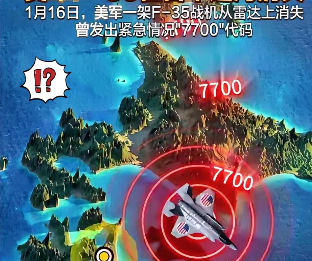 这回美军的面子算是彻底挂不住了。   事情就发生在1月16号,一架被吹成“全球最强”的F-35A隐身战机,正大摇大摆地朝着东海方向飞,没成想飞到半道上,突然就挂出了“7700”这个代码。   懂点航空相关知识的人都知道,这可不是普通信号,而是最高级别的求救信号,意思就是飞机遇到了致命危险,急需救援。   更让人意外的是,这求救信号刚发出来没10秒,雷达屏幕上就再也找不到这架战机的踪影了。   熟悉那片海域情况的都清楚,现在那儿的水温也就2度,这么低的温度,要是战机真掉进去,不管是战机本身还是里面的人员,处境都极其危险,说是掉进了速冻冰柜都毫不夸张。   其实这些年,美军飞机出事故早就不是什么新鲜事了,摔了飞机还不声张的情况也屡见不鲜,有数据统计下来,相关事故都超过4000起了。   说白了,这就是美军自己步子迈得太大导致的问题,一心想着扩张势力、秀肌肉,列装的装备越来越多,任务也越来越繁重,但地勤维护的能力和精力根本跟不上,装备长期处于超负荷运转且维护不到位的状态,不出事才怪,这就是典型的“富贵病”,装备堆得再多,管不好、维护不好,也只是摆设。   这次派F-35A往东海这种敏感海域飞,明眼人都知道是想秀肌肉,彰显自己的军事威慑力。   可结果呢?肌肉没秀成,反而把自己的先进战机给搞丢了,不仅没达到威慑别人的目的,反而让自己在国际上丢了大脸,成了不少人议论的笑柄。   这事儿也看得出来,再先进的高科技装备也经不住折腾,要是连最基本的维护保养都跟不上,让装备长期“过劳”,就算技术再顶尖,也迟早要出问题。   连装备都保障不好,还谈什么军事威慑力?美军这波操作,属实是搬起石头砸了自己的脚,面子里子都丢光了。   大家对此怎么看?欢迎评论区留下您的观点!