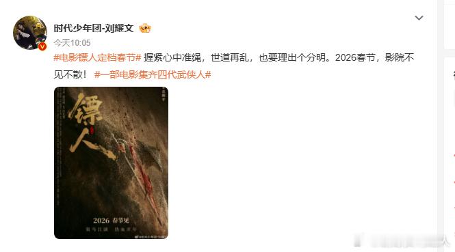 刘耀文回应镖人定档刘耀文回应镖人官宣 初心不改回应期待!刘耀文提及零威亚实拍的坚守,以最硬核的姿态迎接春节档武侠对决。