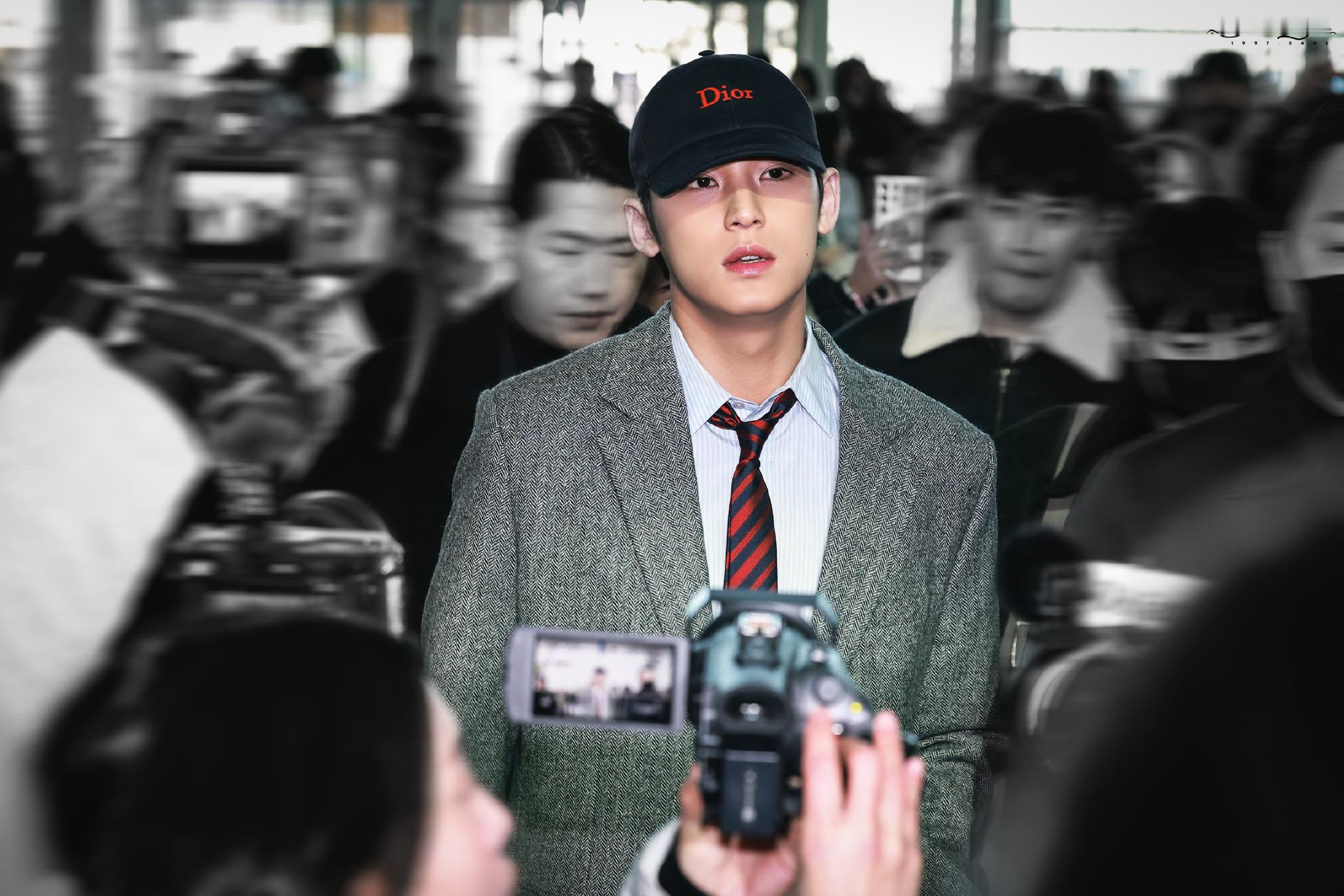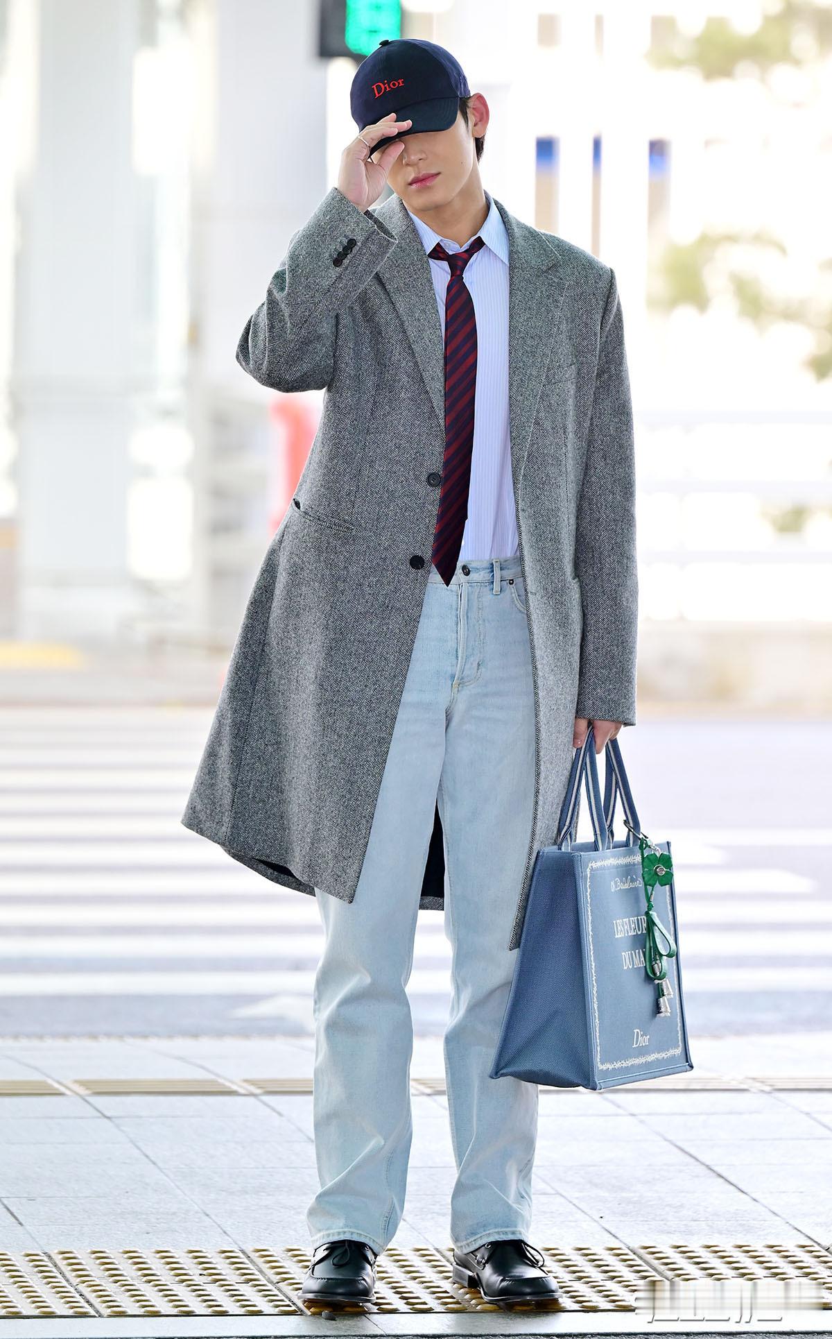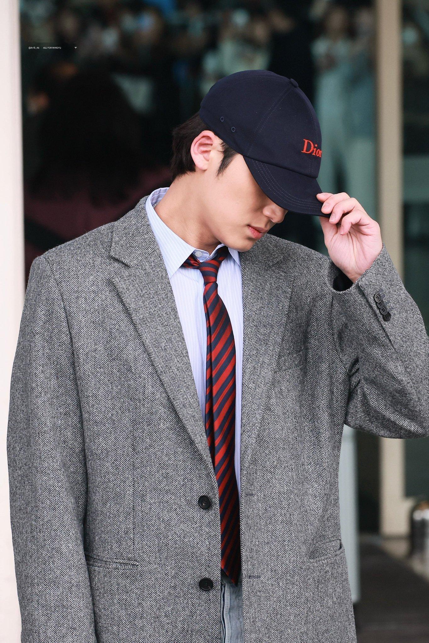 金珉奎 × Dior Fall 2026 Menswear品牌大使 Mingyu 机场出发巴黎男装周 Dior 2026秋冬男装大秀,即将四度亮相,灰色西装大衣搭配棒球帽就已经够权威了,随风飘动的领带妥妥大片直出,帅麻了~秀场见!😎🇫🇷✈️ 男装周