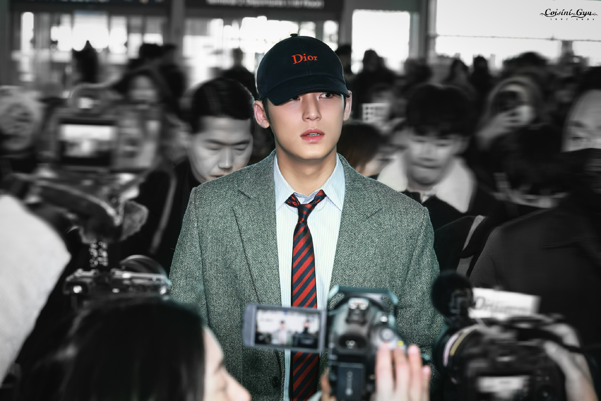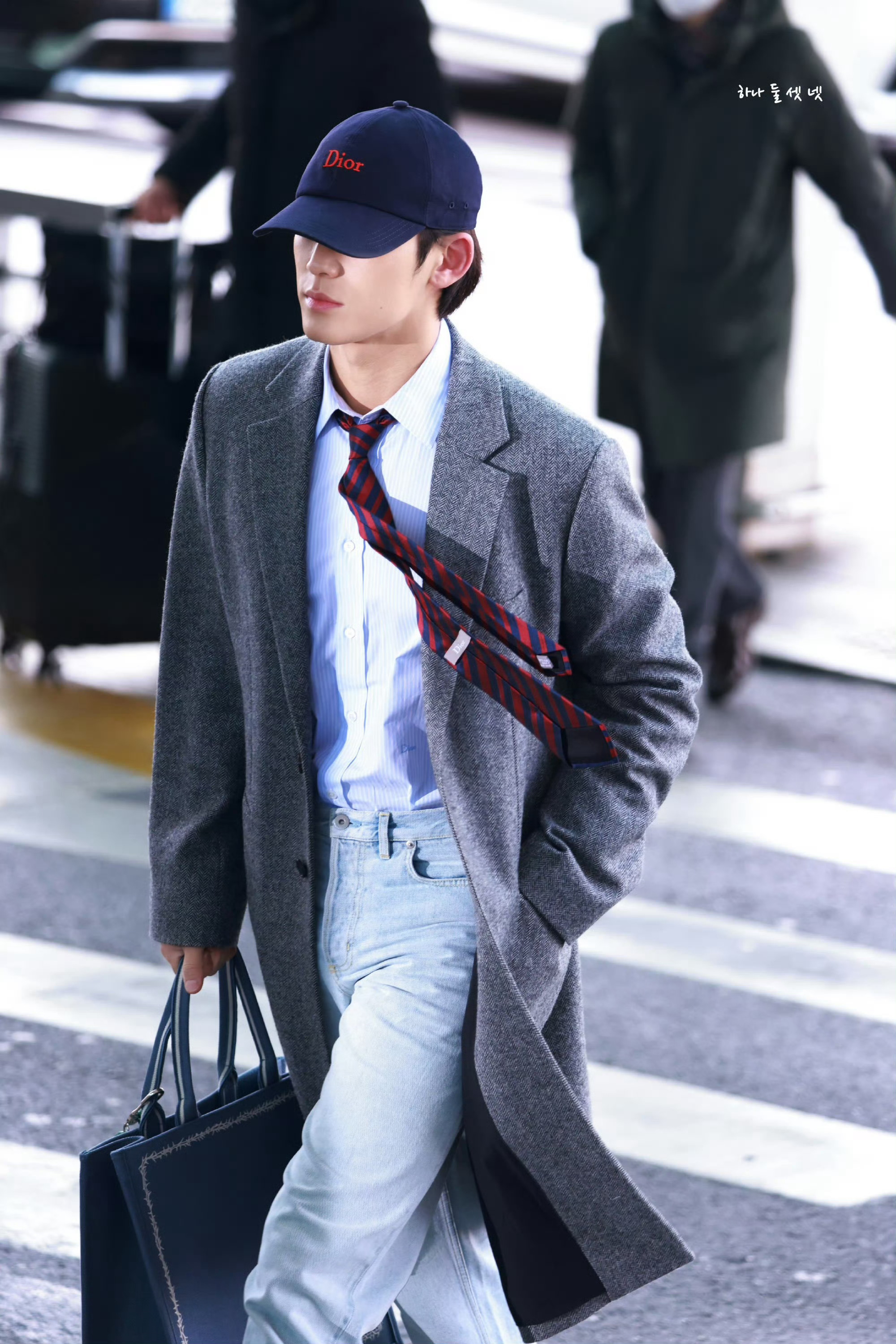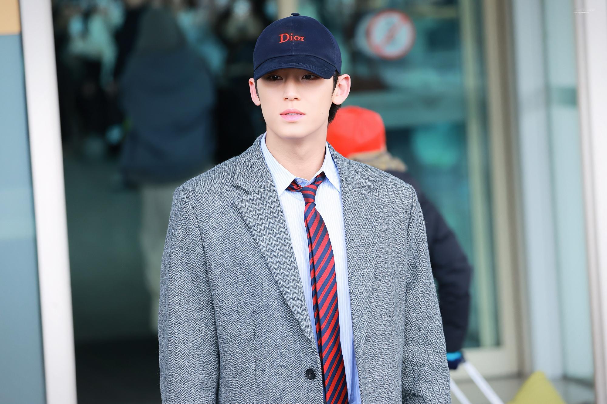 金珉奎 × Dior Fall 2026 Menswear品牌大使 Mingyu 机场出发巴黎男装周 Dior 2026秋冬男装大秀,即将四度亮相,灰色西装大衣搭配棒球帽就已经够权威了,随风飘动的领带妥妥大片直出,帅麻了~秀场见!😎🇫🇷✈️ 男装周