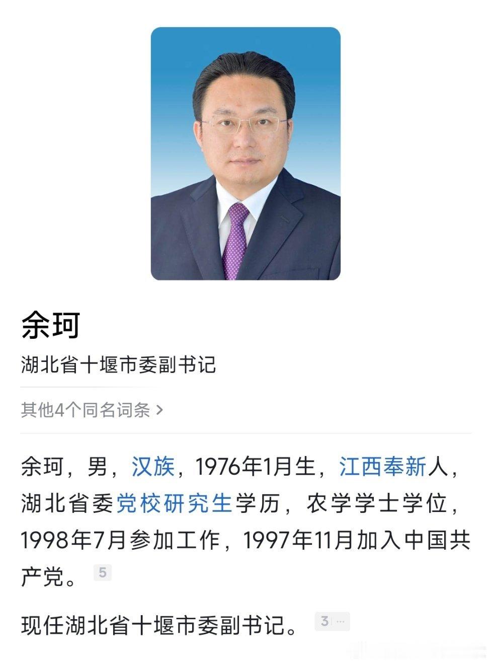余珂已任十堰市委副书记。