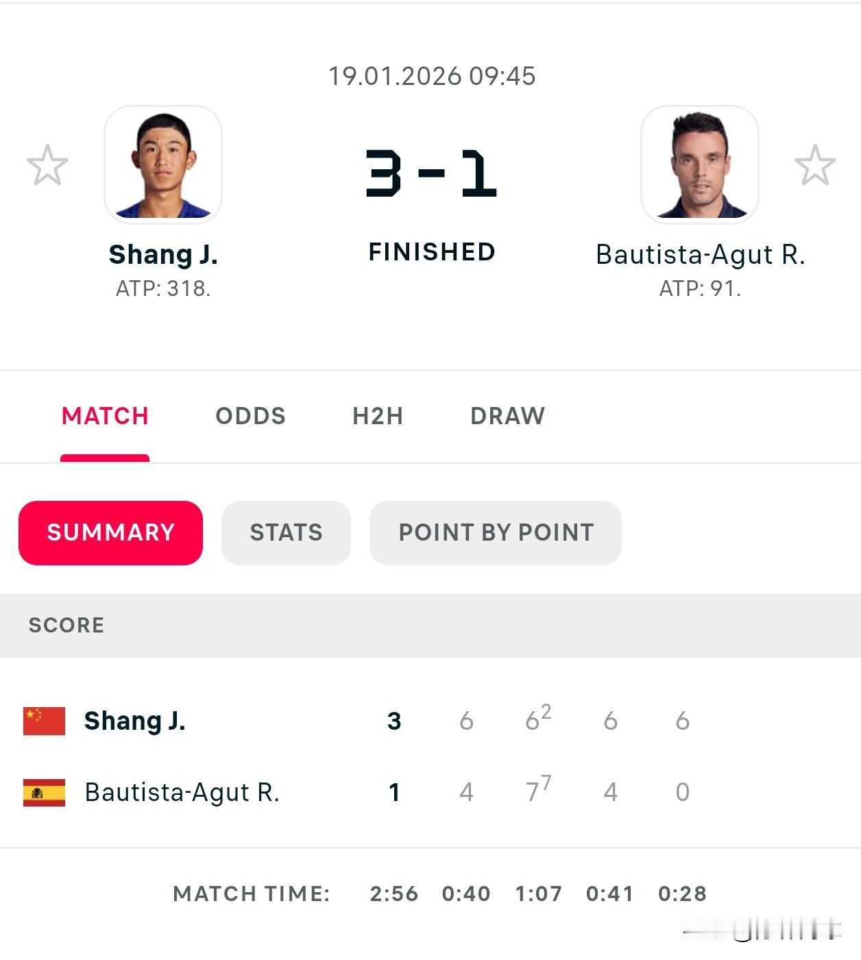 🇨🇳商骏程6-4/6-7/6-4/6-0阿古特🇪🇸 迎来澳网第四胜。 晋级第二轮。