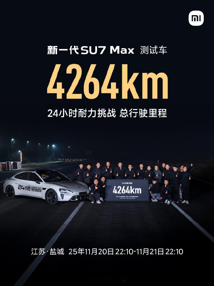 小米新一代SU7 MAX 24小时耐力挑战赛跑出了4264公里的好成绩。直接刷新了小鹏P7的3961公里记录。这项挑战其实不难理解,跑得越远,那这辆电车的三电系统就越优秀。24小时的耐力赛首先是保持240km/h的超高速行驶,而且这24小时还要算上充电时间,在这样的快充快放情况下,散热系统就更为重要。可想而知小米新一代SU7跑出这样的成绩是多么得可贵。顺带一提,雷军透露新一代SU7在努力赶进度了,部分小米之家可能会在春节前后就可以安排展车到店展出。新一代小米SU7新一代SU7小米新su7刷新24小时耐力挑战纪录