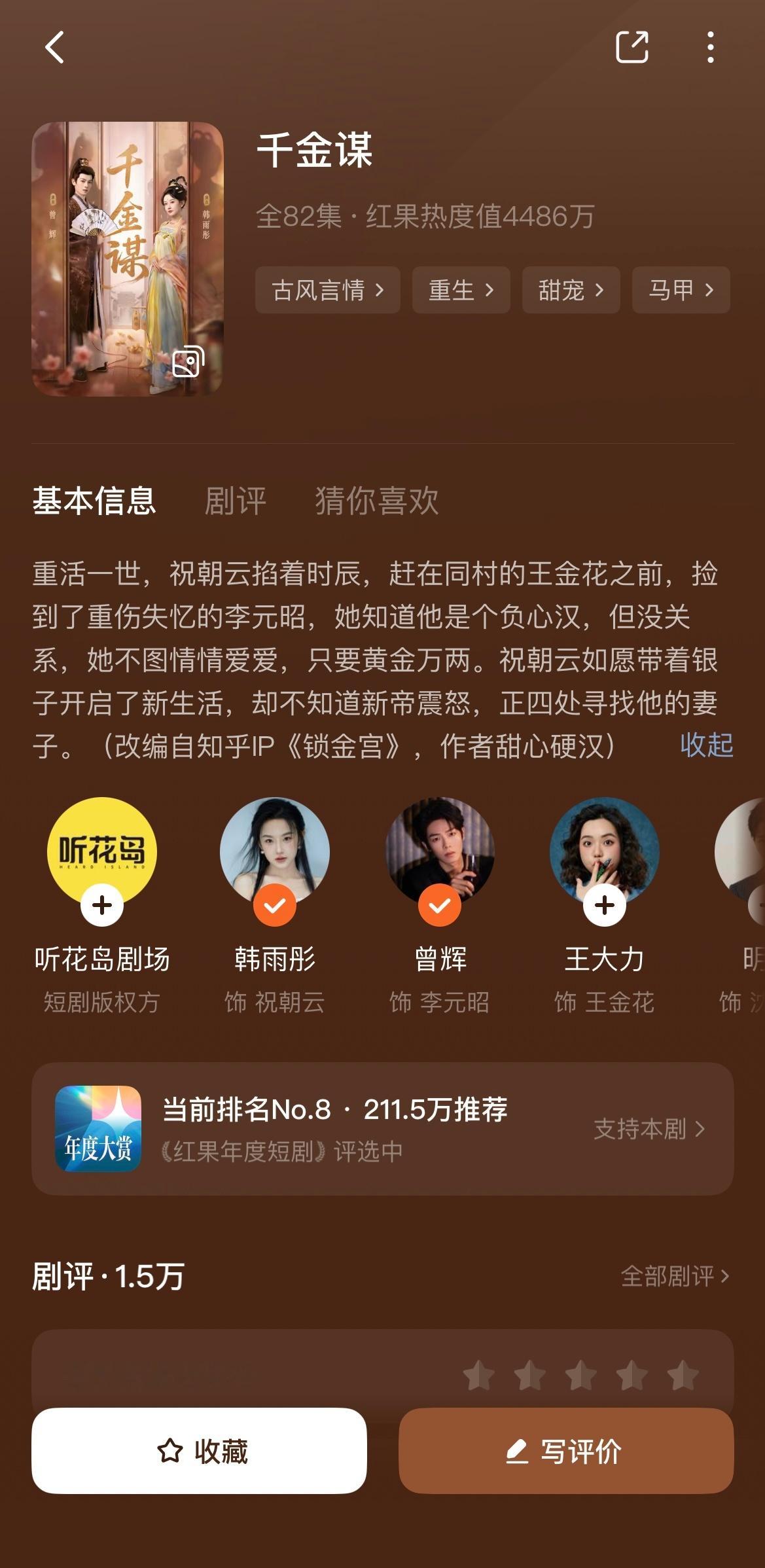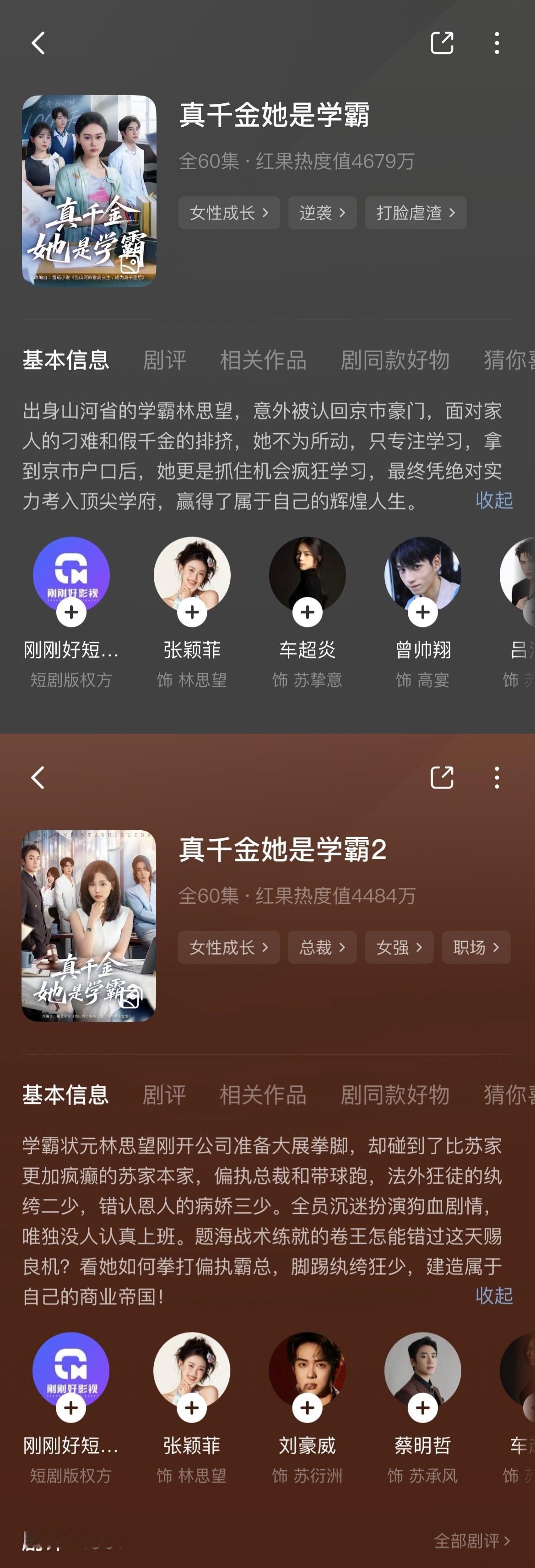 【品鉴短剧中】(都是去年的了特别新的还没看可算把家里家外2看了家里家外绝对是我看了哭最多次的短剧。。亲情线我真忍不住,几个小演员真的演得很好,喜欢演女主儿子那个小孩真千金她是学霸第一部让我感叹火有火的道理,不过感觉是正常人被考试逼疯了的产物啊啊啊!第二部没第一部那么好看误入贵族学校:真千金学霸的女主,依旧清醒人设,感觉真千金1更好看200斤王妃:侯呈玥演的,前面就一直盼着换男主,因为原主已经死了,就算男主爱上又怎样也不过是爱上穿越女罢了。所以结局甚是满意,男主追妻火葬场真的没有成功,而且皇叔跟女主更搭好吧医女古穿今:最近很想看古穿今就点开了,剧本对我来说没什么新意,不过六金真的漂亮很有气质千金谋:这剧真的很久了但我现在才看,女主财迷来的,男主是个纯恋爱脑,男主太喜欢女主了所以经常言出惊人看得我笑傻了。。