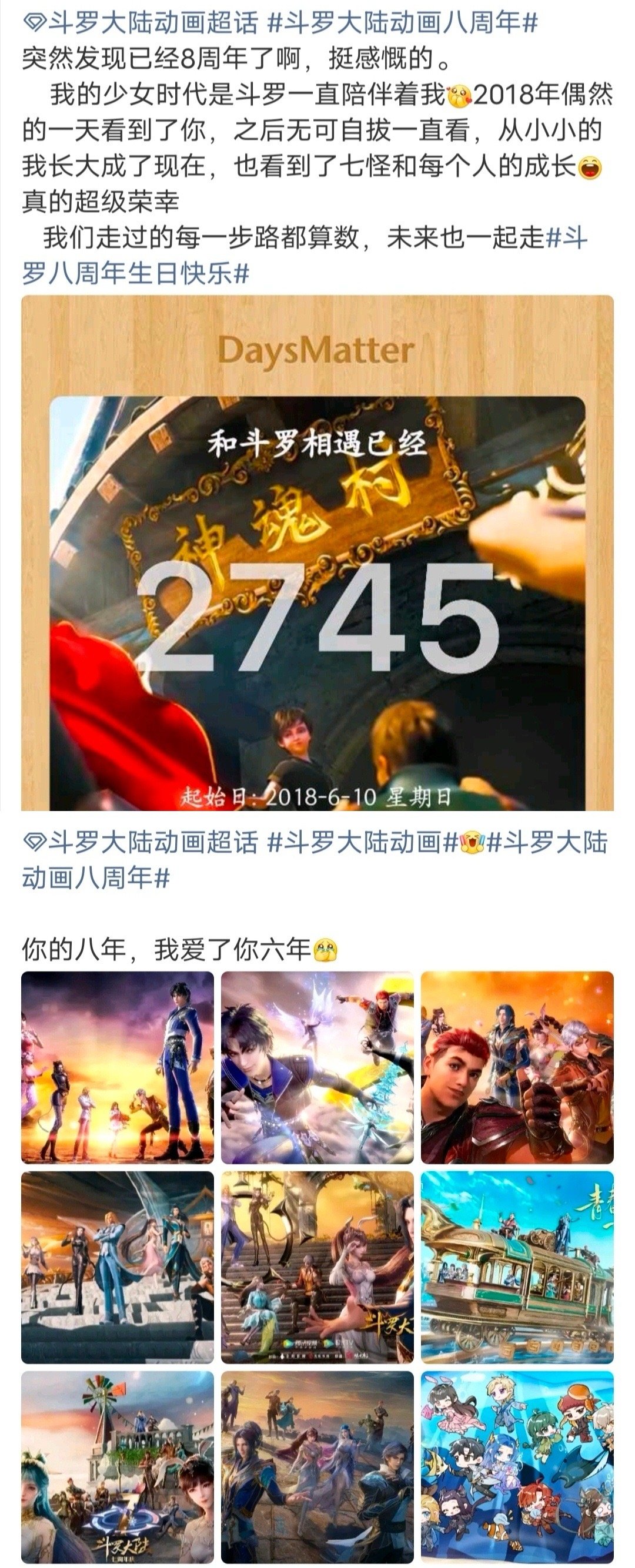 八年了国漫还得看斗罗 八年,对一部连载动漫来说是一段漫长的旅程。《斗罗大陆》能走到今天,离不开每一帧精良的制作,每一个动人的故事,更离不开每一位热爱它的观众。八周年庆典就像一场盛大的家宴,官方和粉丝欢聚一堂,共同庆祝这个属于所有人的节日。期待未来的每一年,都有斗罗的陪伴!