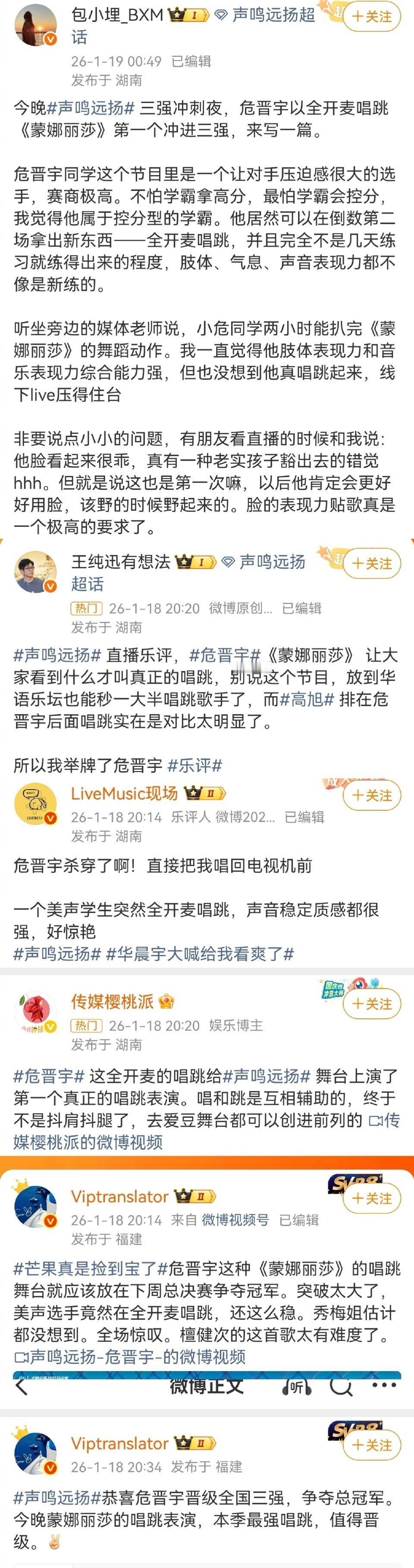 声鸣远扬第一个真正的唱跳表演 被危晋宇的《蒙娜丽莎》惊艳到了!这才是“唱跳”该有的样子——全开麦的稳定发挥,充满细节的舞蹈设计,再加上他独特的舞台感染力。这个舞台,绝对是《声鸣远扬》迄今为止最让人眼前一亮的视听盛宴!声鸣远扬