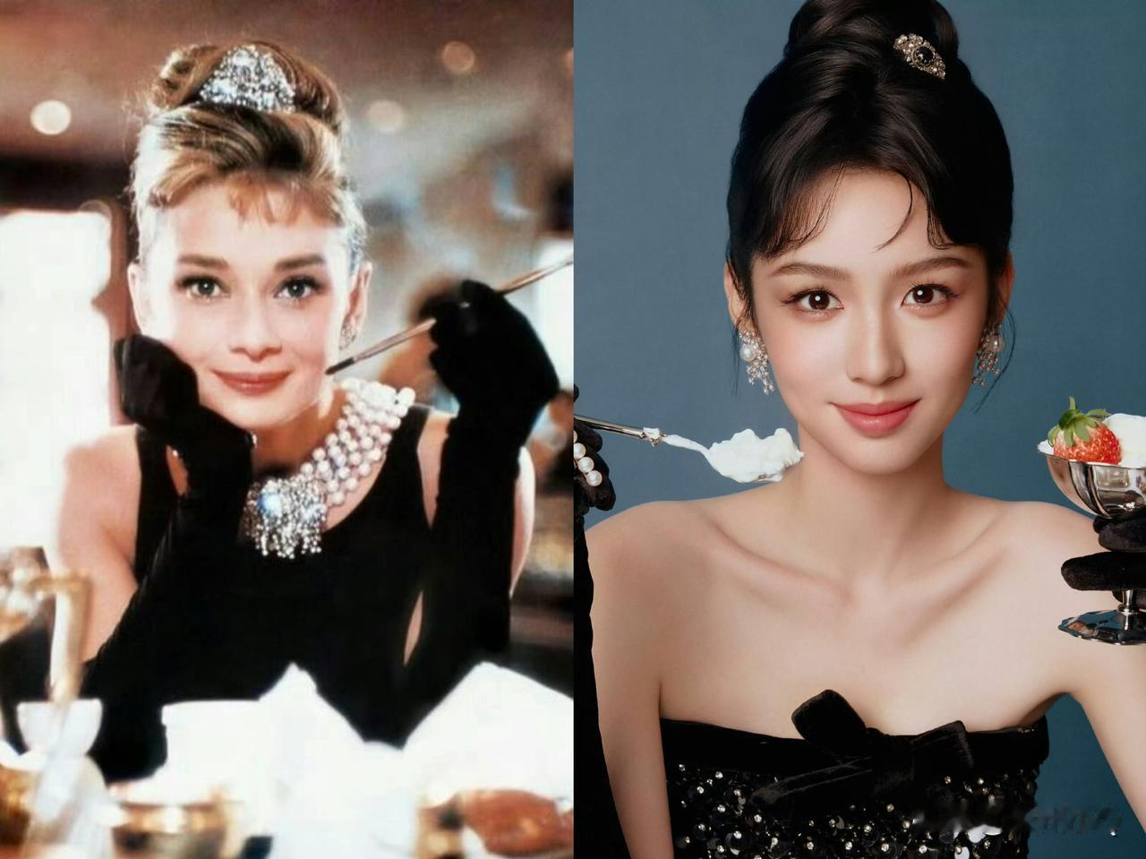周也致敬经典,cos奥黛丽赫本。虽然周也很漂亮,但cos赫本,内娱比较出彩的还属于杨颖和吴昕。