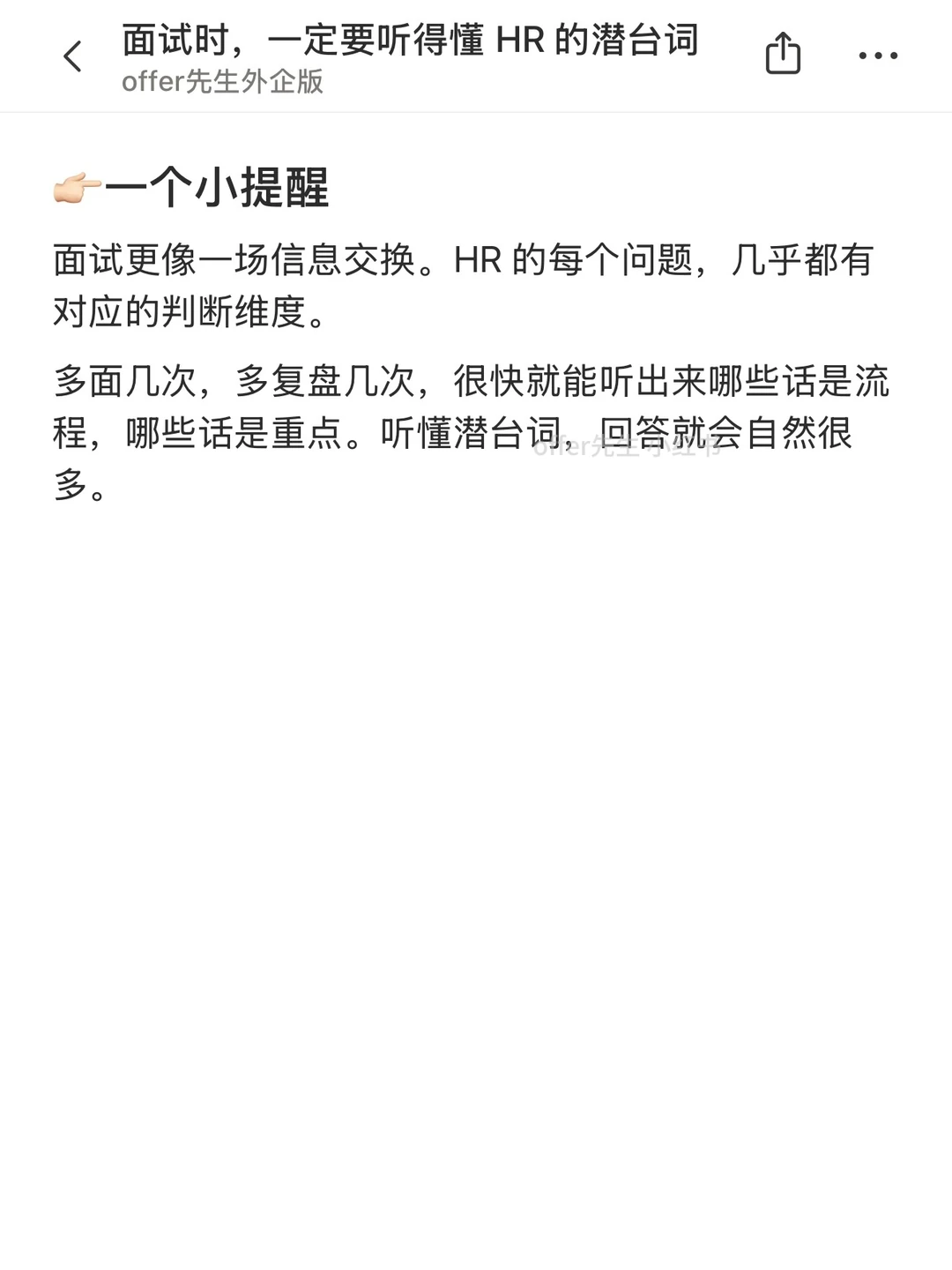 很多时候面试过不了,并不是回答错了问题。而是没听懂 HR 真正想确认什么。 HR 问的话看起来都很日常,背后其实有一套固定判断逻辑。听懂了,回答会省力很多。 一个认真分享“找工作”干货的账号。真诚、有料、不说空话,只想用真实经历、具体方法,帮大家少走点弯路